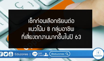 Blog เช็กก่อนเลือกเรียนต่อ แนวโน้ม 8 กลุ่มอาชีพที่เสี่ยงตกงานมากขึ้นในปี 63 EZ Webmaster February 19, 2020 ในปี 2563 หรือปี 2020 นี้แน่นอนว่าเป็นยุคของดิจิทัล เทคโนโลยี และนวัตกรรมต่างๆ ทำให้เป็นที่ทราบกันดีว่าสายอาชีพที่เกี่ยวข้องกับงานด้านไอทีนั้นมีแนวโน้มในตลาดการทำงานที่เพิ่มมากขึ้น มีอาชีพที่เกิดจากยุคเทคโนโลยีนี้มากมายหลายอาชีพและมีโอกาสก้าวหน้าและเติบโตมากขึ้นในอนาคต แต่ในยุคแห่งเทคโนโลยีและด้วยเหตุปัจจัยหลายอย่างก็ทำให้มีอีกหลายสายอาชีพเช่นกันที่มีโอกาสตกงานมากขึ้นในปี 2563 นี้ ธุรกิจสื่อสารมวลชน ด้วยรูปแบบการเสพสื่อของผู้บริโภคที่เปลี่ยนแปลงเป็นออนไลน์มากขึ้น สื่อเก่าที่เป็นเอกสารอย่างหนังสือพิมพ์…