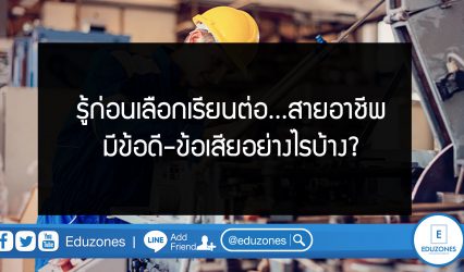 Blogนักเรียน รู้ก่อนเลือกเรียนต่อ…สายอาชีพมีข้อดี-ข้อเสียอย่างไรบ้าง? EZ Webmaster February 19, 2020 สำหรับน้องๆ ที่กำลังวางแผนในการเรียนต่อแต่ยังไม่รู้จะเลือกเรียนอะไรต่อนั้น นอกจากการเรียนต่อสายวิทย์หรือสายศิลป์ในการเรียนสายสามัญแล้ว อีกสายการเรียนที่น่าสนใจไม่แพ้กันก็คือ สายอาชีพ เพราะเป็นสายการเรียนที่ตอบโจทย์สำหรับคนที่ต้องการเรียนตรงสายโดยเฉพาะ และเป็นสายการเรียนที่กำลังเป็นที่ต้องการของตลาดที่มากขึ้นด้วย แต่การเรียนสายอาชีพก็ไม่ได้มีแค่ข้อดีเท่านั้น วันนี้เราจึงมีข้อดี-ข้อเสีย ของการเรียนต่อสายอาชีพเพื่อเป็นตัวเลือกในการตัดสินใจให้กับน้องๆ มาฝากกันค่ะ ข้อดี -มีตัวเลือกหลายหลักสูตร การเรียนในสายอาชีพนั้น…
