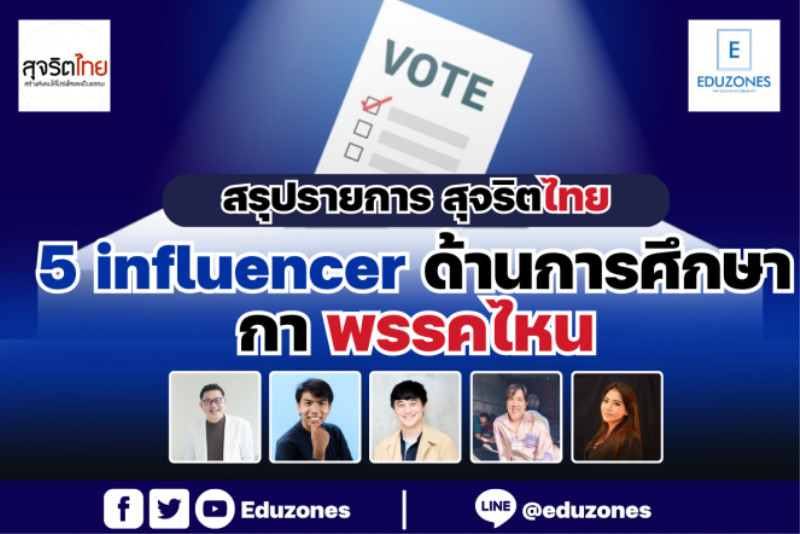 EZ Webmaster May 10, 2023 สรุป 5 influencer ด้านการศึกษา กา พรรคไหน EZ Webmaster May 10, 2023 เมื่อวันที่ 4 พฤษภาคม พ.ศ.2566 ที่เพจ สุจริตไทย และเพจ Wiriyah Eduzones ได้มีการไลฟ์พูดคุยเกี่ยวกับหัวข้อ “5 influencer ด้านการศึกษา กา พรรคไหน” โดยมีผู้ร่วมพูดคุยเป็นอินฟลูเอ็นเซอร์ทางการศึกษาจากเพจต่าง ๆ ได้แก่ 1.อ.วิริยะ ฤาชัยพาณิชย์ จาก เพจ Wiriyah Eduzones 2.ครูทิว จาก เพจ ครูขอสอน 3.ครูกั๊ก จาก เพจ Inskru… Continue Reading