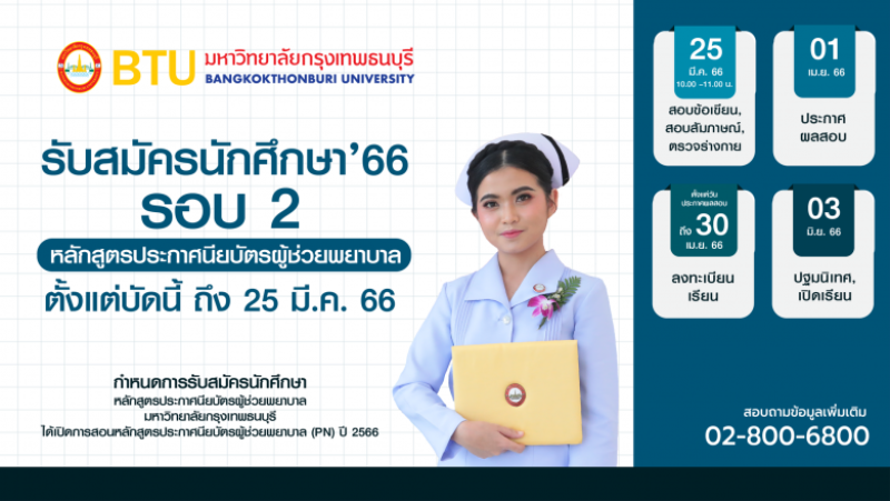 tui sakrapee September 9, 2021 สาขาขาดแคลน! รับตรง 65 ม.กรุงเทพธนบุรี หลักสูตรประกาศนียบัตรผู้ช่วยพยาบาล (PN) เรียน1 ปี 6 เดือน tui sakrapee September 9, 2021 คณะพยาบาลศาสตร์ มหาวิทยาลัยกรุงเทพธนบุรี ประกาศรับสมัคร หลักสูตรประกาศนียบัตรผู้ช่วยพยาบาล (PN) ปีการศึกษา 2565 ระยะเวลาเรียน 1 ปี 6 เดือน การเรียน วันศุกร์(17.00 – 20.00น.) วันเสาร์-อาทิตย์ 8.00 – 16.00น.) คุณสมบัติผู้สมัคร 1.จบการศึกษามัธยมศึกษาตอนปลาย กศน. ปวช. ปวส. ปริญญาตรี 2. อายุ 18 – 40 ปี… Continue Reading