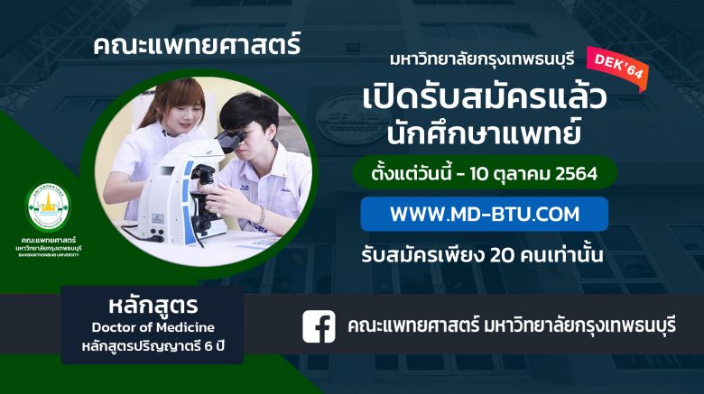 tui sakrapee December 27, 2021 โอกาสเรียนหมอ ยังรออยู่! คณะแพทยศาสตร์ มหาวิทยาลัยกรุงเทพธนบุรี เปิดรับสมัครนักศึกษาใหม่ จนถึงสิ้นปี 64 นี้เท่านั้น tui sakrapee December 27, 2021 น้องๆ #DEK65 ที่มีความฝันอยากเป็นหมอ คณะแพทยศาสตร์ มหาวิทยาลัยกรุงเทพธนบุรี ที่ผ่านการรับรองหลักสูตรแพทยศาสตรบัณฑิต จากแพทยสภาอย่างเป็นทางการแล้ว กำลังเปิดรับสมัครนักศึกษาใหม่ จนถึงสิ้นปีนี้ โดยเปิดรับสมัครนักศึกษาตั้งแต่วันนี้จนถึง 31 ธ.ค. 2564 นี้เท่านั้น รับจำนวนจำกัด 20 คน สอบข้อเขียน 8 – 9 ม.ค. 2565 สอบสัมภาษณ์ 14, 18 ม.ค. 2565 ตรวจสุขภาพร่างกาย จิตใจ 17 ม.ค.… Continue Reading