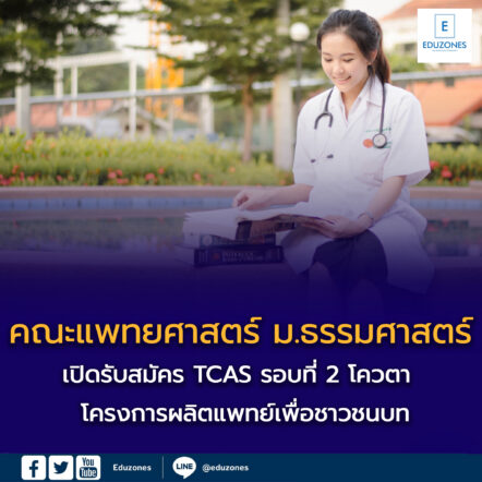 EZ Webmaster March 2, 2025 คณะแพทยศาสตร์ ม.ธรรมศาสตร์ เปิดรับสมัคร TCAS68 รอบที่2 โควตา โครงการผลิตแพทย์เพื่อชาวชนบท EZ Webmaster March 2, 2025 คณะแพทยศาสตร์ ม.ธรรมศาสตร์ เปิดรับสมัคร TCAS68 รอบที่2 โควตา โครงการผลิตแพทย์เพื่อชาวชนบท รับสมัคร วันที่ 3-18 มี.ค.68 . #เปิดรับ 105 คน – ศูนย์แพทยศาสตร์ศึกษาชั้นคลินิก รพ.สุราษฎร์ธานี จำนวน 30 คน – ศูนย์แพทยศาสตร์ศึกษาชั้นคลินิก รพ.สระบุรี จำนวน 30 คน – ศูนย์แพทยศาสตร์ศึกษาชั้นคลินิก รพ.พุทธโสธร จำนวน 30… Continue Reading