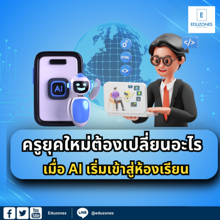 EZ Webmaster June 23, 2025 ครูยุคใหม่ต้องเปลี่ยนอะไร? เมื่อ AI เริ่มเข้าสู่ห้องเรียน EZ Webmaster June 23, 2025 ครูยุคใหม่ต้องเปลี่ยนอะไร? เมื่อ AI เริ่มเข้าสู่ห้องเรียน ในยุคที่เทคโนโลยี AI พัฒนาอย่างรวดเร็ว การศึกษาเองก็เปลี่ยนไปอย่างมาก หลายคนอาจตั้งคำถามว่า “เมื่อ AI สอนหนังสือได้ ครูยังจำเป็นอยู่ไหม?” แต่ในความจริง ครูไม่ได้หายไป กลับมีบทบาทสำคัญยิ่งกว่าเดิม โดยเฉพาะในฐานะผู้เชื่อมโยงเทคโนโลยีกับ “หัวใจมนุษย์” 1. จากผู้สอน สู่ผู้ออกแบบการเรียนรู้ AI ให้ข้อมูลได้แทบทุกอย่าง แต่ยัง “จัดประสบการณ์การเรียนรู้” ไม่ได้ครูจึงต้อง: • วางแผนบทเรียนให้เหมาะกับผู้เรียนแต่ละคน • ใช้ AI… Continue Reading