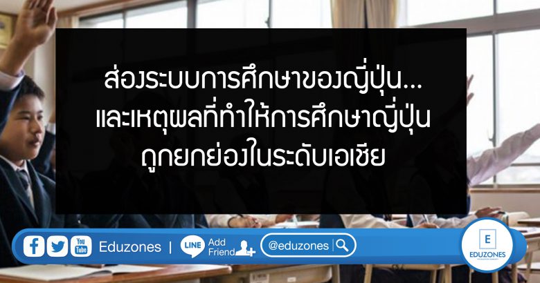 EZ Webmaster January 20, 2020 ส่องระบบการศึกษาของญี่ปุ่น…และเหตุผลที่ทำให้การศึกษาญี่ปุ่นถูกยกย่องในระดับเอเชีย EZ Webmaster January 20, 2020 ประเทศญี่ปุ่นเป็นประเทศที่มีความเจริญก้าวหน้าทั้งด้านเทคโนโลยี นวัตกรรม เศรษฐกิจ รวมไปถึงระบบการศึกษา ระบบการศึกษาของญี่ปุ่นติดอันดับทั้งในระดับเอเชียแลพระดับโลก วันนี้เราจึงจะพาทุกคนไปรู้จักกับระบบการศึกษาของญี่ปุ่นและเหตุผลที่ทำให้การศึกษาของประเทศนี้ก้าวมาเป็นอันดับต้นๆ ในระดับเอเชียกันค่ะ การศึกษาของญี่ปุ่นนั้นแบ่งออกได้เป็น 3 ระดับคือ ระดับต้น ระดับกลาง และระดับสูง การศึกษาระดับต้น ได้แก่ การศึกษาขั้นอนุบาล ซึ่งเริ่มเข้าศึกษาตั้งแต่อายุ 3 ปีไปจนถึงอายุ 5 ปี และขั้นประถมศึกษา 1-6 ตั้งแต่อายุ 6 ปีไปจนถึง 12 ปีโดยประมาณ… Continue Reading