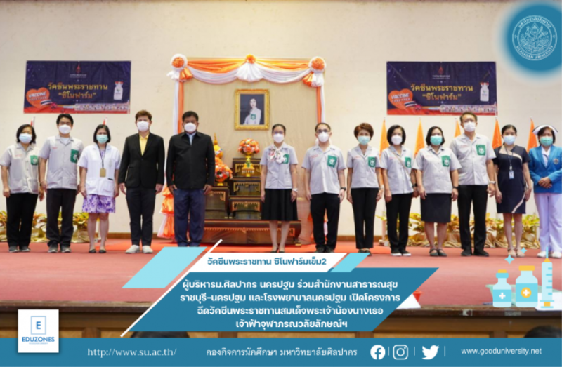tui sakrapee December 9, 2021 ผู้บริหารม.ศิลปากร นครปฐม ร่วมสำนักงานสาธารณสุขราชบุรี-นครปฐม และโรงพยาบาลนครปฐม เปิดโครงการฉีดวัคซีนพระราชทานสมเด็จพระเจ้าน้องนางเธอ เจ้าฟ้าจุฬาภรณวลัยลักษณ์ฯ tui sakrapee December 9, 2021 อาจารย์ ดร.วิชิต อิ่มอารมย์ รองอธิการบดีฝ่ายกิจการนักศึกษา และรองศาสตราจารย์ ดร.สาโรจ พูลเทพ ผู้ช่วยอธิการบดีมหาวิทยาลัยศิลปากร พระราชวังสนามจันทร์ ให้การต้อนรับ หัวหน้าสำนักงานสาธารณสุขจังหวัดราชบุรี ซึ่งให้เกียรติเป็นประธานในพิธีเปิดโครงการฉีดวัคซีนพระราชทานสมเด็จพระเจ้าน้องนางเธอ เจ้าฟ้าจุฬาภรณวลัยลักษณ์ อัครราชกุมารี กรมพระศรีสวางควัฒน วรขัตติยราชนารี” ซิโนฟาร์ม เข็มที่ 2″ ในความร่วมมือของ มหาวิทยาลัยศิลปากร/สำนักงานสาธารณสุขจังหวัดราชบุรี/สำนักงานสาธารณสุขจังหวัดนครปฐม และโรงพยาบาลนครปฐม ในวันพฤหัสบดีที่ 9 ธันวาคม 2564 เวลา 10.00 น. ณ ศูนย์ศิลปวัฒนธรรมเฉลิมพระเกียรติ 6… Continue Reading