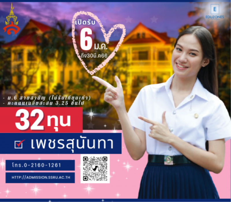 สวนสุนันทาเปิดเวที HIDA รุ่นที่ 5 รวมแพทย์ผู้เชี่ยวชาญถ่ายทอดความรู้ “โรคใกล้ตัว” ชี้แนวทางดูแลตนเอง ลดเสี่ยงโรคเรื้อรังคนไทย tui sakrapeeDecember 19, 2025 📰 ราชภัฏสวนสุนันทาเปิดเวที HIDA รุ่นที่ 5 รวมแพทย์ผู้เชี่ยวชาญถ่ายทอดความรู้ “โรคใกล้ตัว” ชี้แนวทางดูแลตนเอง ลดเสี่ยงโรคเรื้อรังคนไทย เมื่อวันพฤหัสบดีที่ 18 ธันวาคม 2568 ณ โรงแรมชาเทรียม ริเวอร์ไซด์ กรุงเทพฯหลักสูตรผู้บริหารระดับสูงด้านการพัฒนาคุณภาพบริการสุขภาพและความงาม (HIDA)… มหาวิทยาลัยกรุงเทพ จัดงาน “BU Game On! Expo x Job Fair for Game Industry 2025” เวทีพิสูจน์ฝีมือนักพัฒนาเกมรุ่นใหม่ tui sakrapeeDecember 18, 2025 มหาวิทยาลัยกรุงเทพ จัดงาน “BU Game On! Expo x Job Fair for Game Industry 2025″ เวทีพิสูจน์ฝีมือนักพัฒนาเกมรุ่นใหม่ เชื่อมโลกการศึกษาสู่อุตสาหกรรมจริง มหาวิทยาลัยกรุงเทพ จัดงาน… มนุษยศาสตร์ฯ สวนสุนันทา ชวนร่วมงานประชุมวิชาการระดับนานาชาติ ICAC 2026 ด้านชุมชนอาเชียน tui sakrapeeDecember 18, 2025 ขอเชิญร่วมงานประชุมวิชาการระดับนานาชาติ ICAC 2026 ด้านชุมชนอาเชียน ณ มหาวิทยาลัยราชภัฏสวนสุนันทา คณะมนุษยศาสตร์และสังคมศาสตร์ มหาวิทยาลัยราชภัฏสวนสุนันทา ร่วมกับเครือข่ายพันธมิตรทางวิชาการระดับนานาชาติ เตรียมจัดงานประชุมวิชาการระดับนานาชาติ ICAC 2026 (International Conference on Asian Communities) ในวันจันทร์ที่… ถ้าคุณชอบแชร์นี่คือโอกาส! “บริติช เคานซิล” ขยายเวลารับสมัครโครงการ “IELTS Prize 2025” ถึง 31 ธ.ค. นี้ ลุ้นชิงรางวัลรวม 100,000 บาท EZ WebmasterDecember 18, 2025 ถ้าคุณชอบแชร์นี่คือโอกาส! “บริติช เคานซิล” ขยายเวลารับสมัครโครงการ “IELTS Prize 2025” ถึง 31 ธ.ค. นี้ ลุ้นชิงรางวัลรวม 100,000 บาท พร้อมโอกาสร่วมงานกับสถาบันการสอบภาษาอังกฤษระดับโลก กรุงเทพฯ 17 ธันวาคม… Search for: Search Tag: ทุนเพชรสุนันทา EZ Webmaster November 20, 2025 ทุน “เพชรสุนันทา” มรภ.สวนสุนันทา TCAS69 รอบที่ 2 Quota EZ Webmaster November 20, 2025 ทุน “เพชรสุนันทา” มรภ.สวนสุนันทา ทุนฟรีค่าเทอม 30,000 บาท/ปี รับ 57 ทุน (TCAS 69) — ไม่มีข้อผูกพัน! มหาวิทยาลัยราชภัฏสวนสุนันทา เปิดรับสมัครทุนการศึกษา “โครงการเพชรสุนันทา” สำหรับนักเรียน ม.6 ที่มีผลการเรียนดี มีความสามารถโดดเด่น และมีผลงาน Portfolio โดยทุนนี้ ยกเว้นค่าธรรมเนียมการศึกษาและค่าหน่วยกิต มูลค่าประมาณ 30,000 บาท/คน/ปี (ต่อเนื่องทุกปีตลอดหลักสูตร) ทุนนี้ ไม่มีข้อผูกพัน และหากมีผลงานโดดเด่น อาจได้รับคัดเลือกให้เรียนต่อในระดับ… Continue Reading tui sakrapee January 19, 2023 รอบที่ 2 Quota พร้อมรับสมัครทุนเพชรสุนันทา เริ่มวันนี้ถึง 30 มี.ค.นี้ ก้าวสู่อนาคตที่ “สวนสุนันทา” tui sakrapee January 19, 2023 มหาวิทยาลัยราชภัฏสวนสุนันทา เปิดรับสมัครนักศึกษาใหม่ ภาคปกติ ระดับปริญญาตรี ประจำปีการศึกษา 2566 (รอบที่ 2 Quota) ตั้งแต่วันนี้ถึงวันที่ 30 มีนาคม 2566 สมัครได้ที่ https://admission.ssru.ac.th/login รับ