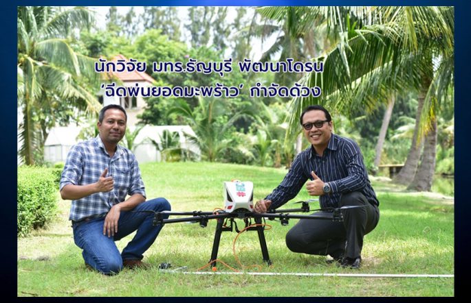 tui sakrapee September 3, 2020 นักวิจัย มทร.ธัญบุรี พัฒนาโดรน ‘ฉีดพ่นยอดมะพร้าว’ กำจัดด้วง tui sakrapee September 3, 2020 2 นักวิจัยคณะวิศวกรรมศาสตร์ มทร.ธัญบุรี ออกแบบและสร้างแขนกล แบบควบคุมระยะไกลติดตั้งใช้งานร่วมกับโดรน เพื่อฉีดพ่นยอดมะพร้าว กำจัดแมลงศัตรูพืช รศ.ดร.เกรียงไกร แซมสีม่วง อาจารย์ที่ปรึกษา และนายวีรยุทธ พรหมจันทร์ นักศึกษาปริญญาโทสาขาวิชาวิศวกรรมเครื่องจักรกลเกษตร ภาควิชาวิศวกรรมเกษตร คณะวิศวกรรมศาสตร์ มหาวิทยาลัยเทคโนโลยีราชมงคลธัญบุรี (มทร.ธัญบุรี) เจ้าของไอเดีย ผลงานวิจัยที่ออกแบบและสร้างชุดแขนกลพ่นน้ำยาที่สามารถยึดและหดได้แบบควบคุมระยะไกลติดตั้งใช้งานร่วมกับโดรน สำหรับฉีดพ่นยอดมะพร้าวที่เกิดด้วงเจาะทำลาย โดยมีวัตถุประสงค์หลักในการออกแบบ คือ สามารถฉีดพ่นน้ำยากำจัดด้วงมะพร้าว โดยหัวฉีดเข้าใกล้เป้าหมายด้วยการยืดของแขนกล ใช้งานง่าย มีระบบการทำงานที่ไม่ซับซ้อน ทดแทนการใช้แรงงานคนในการฉีดพ่น มีความปลอดภัยและเป็นอีกหนึ่งทางเลือกสำหรับเกษตรกรที่มีโดรนพ่นยาใช้งานอยู่แล้ว หรือผู้ประกอบการรับจ้างฉีดพ่นสารกำจัดศัตรูพืชด้วยโดรน แมลงศัตรูมะพร้าวที่สำคัญนั้น มีอยู่ 2 จำพวก คือ แมลงเพลี้ยและหนอนหัวดำมะพร้าว โดยจะเข้าทำลายบริเวณส่วนทางใบของมะพร้าว… Continue Reading