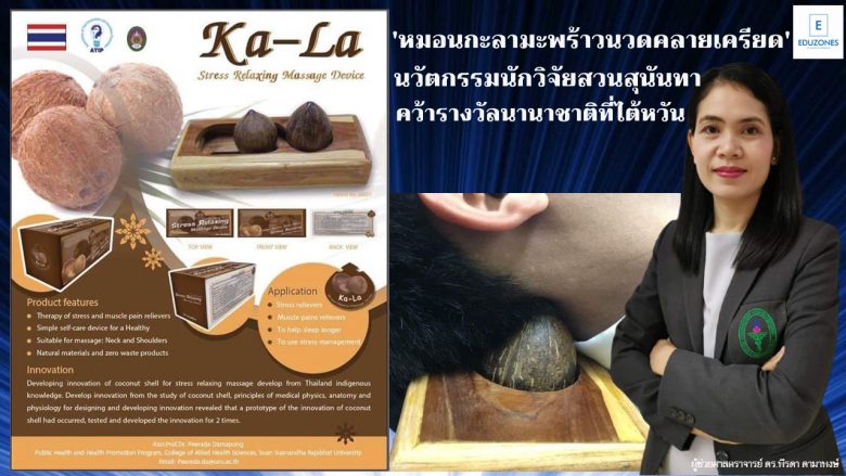 tui sakrapee November 8, 2020 “หมอนกะลามะพร้าวนวดคลายเครียด”นวัตกรรมนักวิจัยสวนสุนันทาคว้ารางวัลนานาชาติที่ไต้หวัน tui sakrapee November 8, 2020 ผู้ช่วยศาสตราจารย์ ดร.พีรดา ดามาพงษ์ อาจารย์สาขาวิชาสาธารณสุขศาสตร์และการส่งเสริมสุขภาพ วิทยาลัยสหเวชศาสตร์ มหาวิทยาลัยราชภัฏสวนสุนันทา คว้ารางวัลเหรียญเงิน (Silver Medal) จากการส่งผลงานสิ่งประดิษฐ์และนวัตกรรมใหม่เข้าประกวดเวทีวิจัยระดับนานาชาติ ในงาน 2020 International Innovation and Invention Competition จัดขึ้น ณ The Ambassador Hotel – Taipei (2020IIIC) ประเทศไต้หวัน ผู้ช่วยศาสตราจารย์ ดร.พีรดา กล่าวว่า “หมอนกะลามะพร้าวนวดคลายเครียด หรือCOCONUT SHELL… Continue Reading