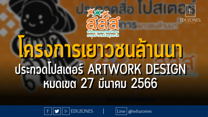 EZ Webmaster March 20, 2023 โครงการเยาวชนล้านนา ประกวดโปสเตอร์ Artwork design – หมดเขต 27 มีนาคม 2566 EZ Webmaster March 20, 2023 สลค.ภาคเหนือตอนบน และ สสส. ขอเชิญชวนร่วมส่งผลงานประกวดสื่อ โปสเตอร์ Artwork design “โครงการเยาวชนล้านนา” สร้างสื่อปลอดภัย สร้างสรรค์ผลงาน เน้นวิถีล้านนา อู้คำเมือง ชิงเงินรางวัลรวมกว่า 15,000 บาท ส่งผลงานได้ตั้งแต่บัดนี้ – วันที่ 27 มีนาคม 2566 . ผู้มีสิทธิ์ส่งผลงานเข้าประกวด ต้องเป็นเยาวชนอายุไม่เกิน 25 ปีบริบูรณ์ และอาศัยอยู่ใน 8 จังหวัดภาคเหนือตอนบนเท่านั้น (เชียงใหม่,เชียงราย,แพร่,น่าน,ลำปาง,ลำพูน,พะเยา,แม่ฮ่องสอน) . กติกาการสมัคร… Continue Reading