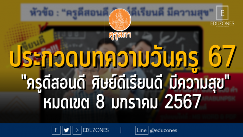 EZ Webmaster December 23, 2023 คุรุสภา จัดประกวดสปอตวิทยุและสปอตโทรทัศน์วันครู ประจำปี 2567 หัวข้อ “ครูดีสอนดี ศิษย์ดีเรียนดี มีความสุข” ชิงเงินรางวัลรวม 234,000 บาท : หมดเขต 25 ธันวาคม 2566 EZ Webmaster December 23, 2023 คุรุสภา จัดประกวดสปอตวิทยุและสปอตโทรทัศน์วันครู ประจำปี 2567 หัวข้อ “ครูดีสอนดี ศิษย์ดีเรียนดี มีความสุข” ชิงเงินรางวัลรวม 234,000 บาท : หมดเขต 25 ธันวาคม 2566 . รายละเอียด หัวข้อ : “ครูดีสอนดี ศิษย์ดีเรียนดี มีความสุข” ส่งเข้าประกวดเป็นทีม ๆ ละ 2 – 5 คน หรือส่งผลงานดี่ยว ไม่จำกัดรูปแบบและเทคนิคในการนำเสนอ… Continue Reading
