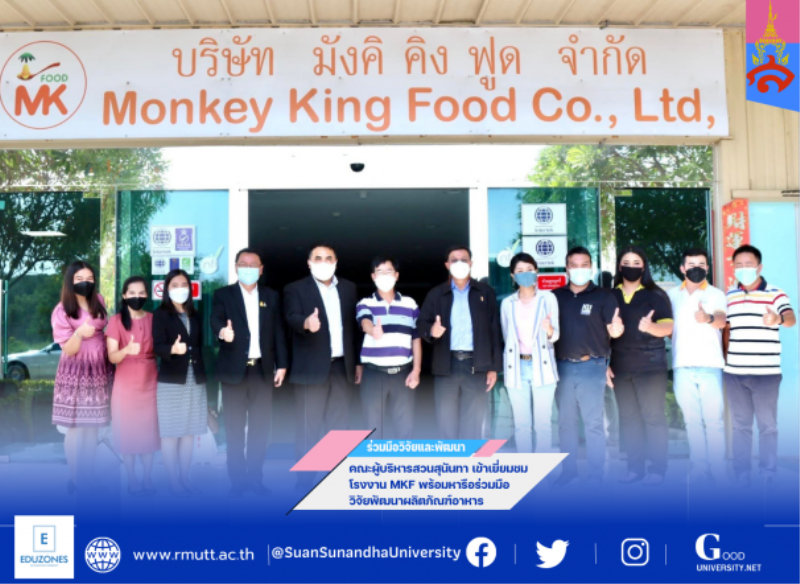 tui sakrapee December 20, 2021 คณะผู้บริหารสวนสุนันทาเยี่ยมชมโรงงาน MKF ร่วมมือวิจัยพัฒนาผลิตภัณฑ์อาหาร tui sakrapee December 20, 2021 รศ.ดร.ชุติกาญจน์ ศรีวิบูลย์ อธิการบดีมหาวิทยาลัยราชภัฏสวนสุนันทา มอบหมายให้ ผศ.ดร.คมสัน โสมณวัตร รองอธิการบดีวิทยาเขตนครปฐม และรศ.ดร.สมเดช รุ่งศรีสวัสดิ์ คณบดีวิทยาลัยสหเวชศาสตร์ และคณะ เยี่ยมศึกษาดูงานโรงงาน Monkey King Food (MKF) โดยมี ดร.เทพรักษ์ เหลืองสุวรรณ ประธานบริษัท Namyong Group กรรมการส่งเสริมกิจการมหาวิทยาลัยราชภัฏสวนสุนันทา และ Mr.Wang Kang Ping, Managing Director, MKF ให้การต้อนรับอย่างดียิ่ง บริษัท… Continue Reading