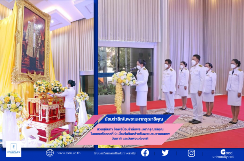 tui sakrapee December 5, 2021 สวนสุนันทา จัดพิธีน้อมรำลึกพระมหากรุณาธิคุณในหลวงรัชกาลที่ 9 เนื่องในวันคล้ายวันพระบรมราชสมภพ วันชาติ และวันพ่อแห่งชาติ tui sakrapee December 5, 2021 วันที่ 5 ธันวาคม 2564 เวลา 09.00 น. มหาวิทยาลัยราชภัฏสวนสุนันทา จัดพิธีน้อมรำลึกในพระมหากรุณาธิคุณ พระบาทสมเด็จพระบรมชนกาธิเบศร มหาภูมิพลอดุลยเดชมหาราช บรมนาถบพิตร เนื่องในโอกาสวันคล้ายวันพระบรมราชสมภพ วันชาติ และวันพ่อแห่งชาติ โดยมี รองศาสตราจารย์ ดร.ชุติกาญจน์ ศรีวิบูลย์ อธิการบดี เป็นประธาน พร้อมด้วยผู้บริหาร เข้าร่วมในพิธีครั้งนี้ โดยถ่ายทอดสดผ่านระบบออนไลน์ เพจ facebook มหาวิทยาลัยราชภัฏสวนสุนันทา ณ โถงพิธีอาคารสำนักงานอธิการบดี มหาวิทยาลัยราชภัฏสวนสุนันทา … …… Continue Reading