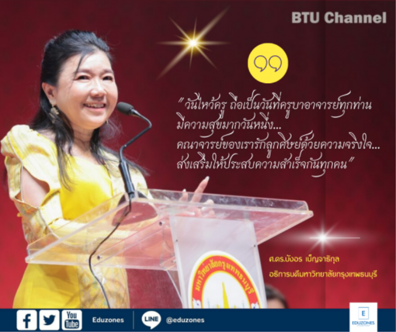 tui sakrapee July 15, 2023 “ศ.ดร.บังอร เบ็ญจาธิกุล” ประธานพิธีไหว้ครู ม.กรุงเทพธนบุรี สุดอบอุ่น พร้อมจัด “รักน้อง” เสริมรักสามัคคี tui sakrapee July 15, 2023 ศาสตราจารย์ ดร.บังอร เบ็ญจาธิกุล อธิการบดี มหาวิทยาลัยกรุงเทพธนบุรี (มกธ.) ให้เกียรติเป็นประธานพร้อมให้โอวาทแก่นักศึกษาในพิธีไหว้ครู ประจำปีการศึกษา 2566 เพื่อส่งเสริมการปลูกฝังให้นักศึกษาได้แสดงความเคารพ กตัญญูกตเวที และยอมรับนับถือครูบาอาจารย์อย่างจริงใจ อีกทั้งกระตุ้นให้นักศึกษาเข้าใจถึงคุณค่าเชิงคุณธรรมจริยธรรมในฐานะเป็นผู้สืบทอดมรดกทางปัญญา ความรู้เชิงวิชาการวิชาชีพด้วยความวิริยะ อุตสาหะ มานะ เพียรพยายาม อดทน เพื่อให้นักศึกษาบรรลุเป้าหมายของการศึกษาตามที่ตั้งใจไว้ ณ อาคาร BANGKOKTHONBURI HALL เมื่อวันที่ 9 กรกฎาคม 2566 ศ.ดร.บังอร เบ็ญจาธิกุล กล่าวว่า พิธีไหว้ครูเป็นประเพณีอันดีงามของชาวไทยที่สืบทอดกันมาตั้งแต่โบราณ… Continue Reading