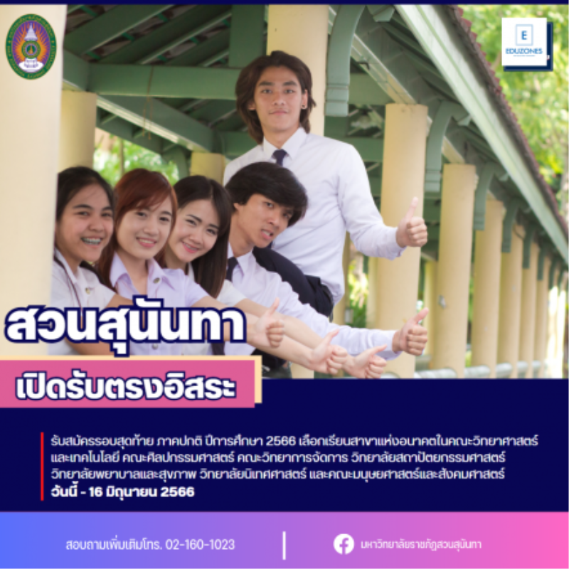 สวนสุนันทาเปิดเวที HIDA รุ่นที่ 5 รวมแพทย์ผู้เชี่ยวชาญถ่ายทอดความรู้ “โรคใกล้ตัว” ชี้แนวทางดูแลตนเอง ลดเสี่ยงโรคเรื้อรังคนไทย tui sakrapeeDecember 19, 2025 📰 ราชภัฏสวนสุนันทาเปิดเวที HIDA รุ่นที่ 5 รวมแพทย์ผู้เชี่ยวชาญถ่ายทอดความรู้ “โรคใกล้ตัว” ชี้แนวทางดูแลตนเอง ลดเสี่ยงโรคเรื้อรังคนไทย เมื่อวันพฤหัสบดีที่ 18 ธันวาคม 2568 ณ โรงแรมชาเทรียม ริเวอร์ไซด์ กรุงเทพฯหลักสูตรผู้บริหารระดับสูงด้านการพัฒนาคุณภาพบริการสุขภาพและความงาม (HIDA)… มหาวิทยาลัยกรุงเทพ จัดงาน “BU Game On! Expo x Job Fair for Game Industry 2025” เวทีพิสูจน์ฝีมือนักพัฒนาเกมรุ่นใหม่ tui sakrapeeDecember 18, 2025 มหาวิทยาลัยกรุงเทพ จัดงาน “BU Game On! Expo x Job Fair for Game Industry 2025″ เวทีพิสูจน์ฝีมือนักพัฒนาเกมรุ่นใหม่ เชื่อมโลกการศึกษาสู่อุตสาหกรรมจริง มหาวิทยาลัยกรุงเทพ จัดงาน… มนุษยศาสตร์ฯ สวนสุนันทา ชวนร่วมงานประชุมวิชาการระดับนานาชาติ ICAC 2026 ด้านชุมชนอาเชียน tui sakrapeeDecember 18, 2025 ขอเชิญร่วมงานประชุมวิชาการระดับนานาชาติ ICAC 2026 ด้านชุมชนอาเชียน ณ มหาวิทยาลัยราชภัฏสวนสุนันทา คณะมนุษยศาสตร์และสังคมศาสตร์ มหาวิทยาลัยราชภัฏสวนสุนันทา ร่วมกับเครือข่ายพันธมิตรทางวิชาการระดับนานาชาติ เตรียมจัดงานประชุมวิชาการระดับนานาชาติ ICAC 2026 (International Conference on Asian Communities) ในวันจันทร์ที่… ถ้าคุณชอบแชร์นี่คือโอกาส! “บริติช เคานซิล” ขยายเวลารับสมัครโครงการ “IELTS Prize 2025” ถึง 31 ธ.ค. นี้ ลุ้นชิงรางวัลรวม 100,000 บาท EZ WebmasterDecember 18, 2025 ถ้าคุณชอบแชร์นี่คือโอกาส! “บริติช เคานซิล” ขยายเวลารับสมัครโครงการ “IELTS Prize 2025” ถึง 31 ธ.ค. นี้ ลุ้นชิงรางวัลรวม 100,000 บาท พร้อมโอกาสร่วมงานกับสถาบันการสอบภาษาอังกฤษระดับโลก กรุงเทพฯ 17 ธันวาคม… Search for: Search Tag: มหาวิทยาลัยราชภัฏสวนสุนันทา EZ Webmaster November 20, 2025 ทุน “เพชรสุนันทา” มรภ.สวนสุนันทา TCAS69 รอบที่ 2 Quota EZ Webmaster November 20, 2025 ทุน “เพชรสุนันทา” มรภ.สวนสุนันทา ทุนฟรีค่าเทอม 30,000 บาท/ปี รับ 57 ทุน (TCAS 69) — ไม่มีข้อผูกพัน! มหาวิทยาลัยราชภัฏสวนสุนันทา เปิดรับสมัครทุนการศึกษา “โครงการเพชรสุนันทา” สำหรับนักเรียน ม.6 ที่มีผลการเรียนดี มีความสามารถโดดเด่น และมีผลงาน Portfolio โดยทุนนี้ ยกเว้นค่าธรรมเนียมการศึกษาและค่าหน่วยกิต มูลค่าประมาณ 30,000 บาท/คน/ปี (ต่อเนื่องทุกปีตลอดหลักสูตร) ทุนนี้ ไม่มีข้อผูกพัน และหากมีผลงานโดดเด่น อาจได้รับคัดเลือกให้เรียนต่อในระดับ… Continue Reading tui sakrapee October 19, 2023 รอบที่ 1 วันที่ 1 พ.ย.นี้ ยื่น Portfolio โชว์ว่าใช่ ที่ “สวนสุนันทา” tui sakrapee October 19, 2023 มหาวิทยาลัยราชภัฏสวนสุนันทา เปิดรับสมัครนักศึกษา ภาคปกติ ระดับปริญญาตรี ปีการศึกษา 2567 (รอบที่ 1 Portfolio ) ระหว่างวันที่ 1 พ.ย. 2566 – 7 ม.ค. 2567 สมัครผ่านระบบอินเทอร์เน็ตได้ที่เว็บไซต์ https://admission.ssru.ac.th/isqy03 ปฏิทินกา