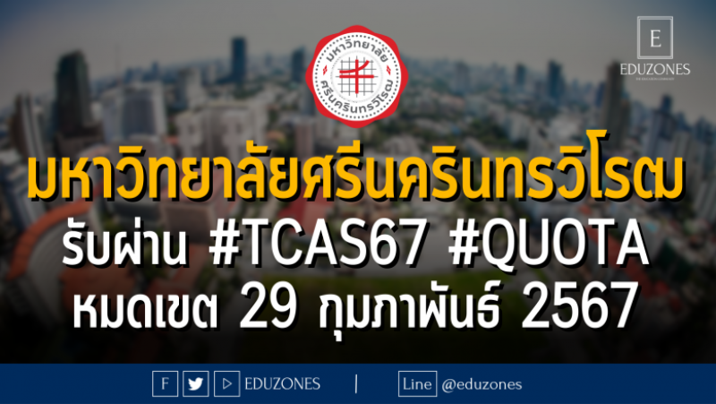 EZ Webmaster February 24, 2024 มหาวิทยาลัยศรีนครินทรวิโรฒ รับผ่าน #TCAS67 รอบ 2 #QUOTA : หมดเขต 29 กุมภาพันธ์ 2567 EZ Webmaster February 24, 2024 มหาวิทยาลัยศรีนครินทรวิโรฒ รับผ่าน #TCAS67 รอบ 2 #QUOTA : หมดเขต 29 กุมภาพันธ์ 2567 . เปิดรับ 9 โครงการ โครงการนักกีฬา โครงการผู้มีทักษะพิเศษ โครงการความร่วมมือ “โรงเรียนสาธิตมหาวิทยาลัยศรีบคริบทรวิโรฒ และโรงเรียนในเครีอข่ายฯ” โครงการรับผู้สำเร็จการศึกษา หลักสูตรประกาศนียบัตรผู้ช่วยพยาบาล โครงการบัณฑิตคืนถิ่น โพธิวิชชาลัย โครงการ “โรงเรียนในเขตพื้นที่มหาวิทยาลัยและปริมณฑล” โครงการ “เขตบริการสุขภาพของกระทรวงสาธารณสุข คณะกายภาพบำบัด” โครงการเพชรในตมคณะศึกษาศาสตร์ โครงการทุนเอราวัณ กรุงเทพมหานคร… Continue Reading