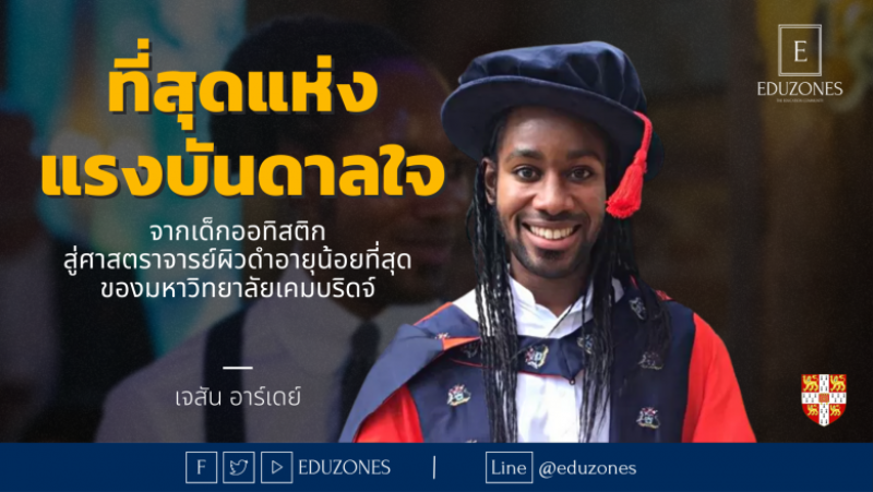 EZ Webmaster March 18, 2023 จากเด็กออทิสติก สู่ศาสตราจารย์ผิวดำอายุน้อยที่สุดของมหาวิทยาลัยเคมบริดจ์ – เจสัน อาร์เดย์ EZ Webmaster March 18, 2023 จากเด็กออทิสติก สู่ศาสตราจารย์ผิวดำอายุน้อยที่สุดของมหาวิทยาลัยเคมบริดจ์ – เจสัน อาร์เดย์ . เจสัน อาร์เดย์ จากเด็กหนุ่ยผู้มีภาวะออทิซึม และมีพัฒนาการล่าช้าในทุกด้าน ไม่สามารถพูดได้จนกระทั่งอายุ 11 ปี และอ่านหนังสือไม่ออกเขียนไม่ได้จนถึงอายุ 18 ปี ก้าวเข้าสู่บุคคลผิวดำอายุน้อยที่สุดที่ได้รับการแต่งตั้งเป็นศาสตราจารย์ของมหาวิทยาลัยเคมบริดจ์ในวัย 37 ปี . เจสัน เป็นเด็กที่มักมีคำถามเกี่ยวกับเรื่องราวรอบตัวอยู่เสมอ “ทำไมบางคนถึงเป็นคนไร้บ้าน” เขายังจำเรื่องที่ตัวเองเฝ้าสงสัยในวัยเด็กได้ “ทำไมถึงมีสงคราม” เจสัน ซึ่งปัจจุบันเป็นนักสังคมวิทยา เกิดและเติบโตในย่านแคลปแฮม ทางตะวันตกเฉียงใต้ของกรุงลอนดอน เขาเล่าถึงช่วงเวลาต่าง ๆ ที่ตราตรึงใจในวัยเด็ก… Continue Reading