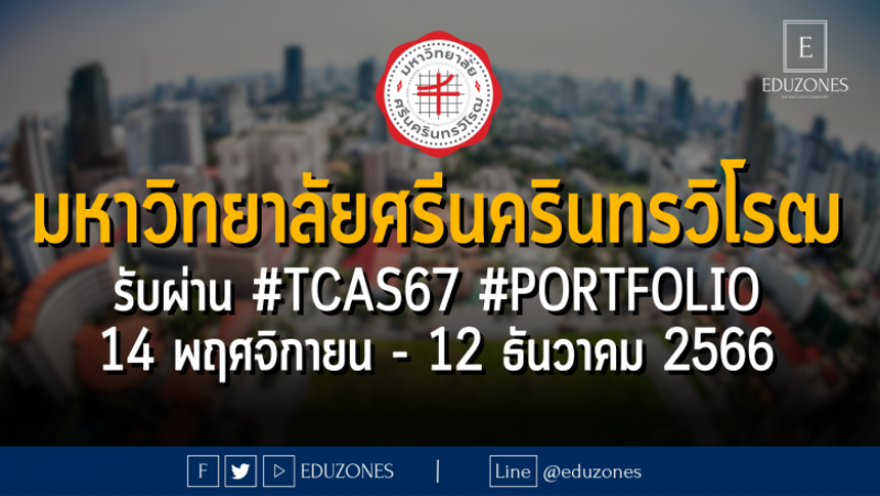 EZ Webmaster November 4, 2023 มหาวิทยาลัยศรีนครินทรวิโรฒ รับผ่าน #TCAS67 รอบ 1 #PORTFOLIO : สมัคร 14 พฤศจิกายน – 12 ธันวาคม 2566 EZ Webmaster November 4, 2023 มหาวิทยาลัยศรีนครินทรวิโรฒ รับผ่าน #TCAS67 รอบ 1 #PORTFOLIO : สมัคร 14 พฤศจิกายน – 12 ธันวาคม 2566 . เปิดรับ 5 โครงการ โครงการเด็กดีมีที่เรียน : 1,683 คน โครงการผู้พิการ : 9 คน โครงการผู้มีทักษะพิเศษ : 781 คน โครงการพัฒนาบัณฑิตสู่สากล หลักสูตร… Continue Reading
