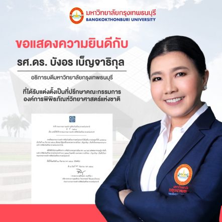 tui sakrapee October 12, 2021 รศ.ดร.บังอร เบ็ญจาธิกุล อธิการบดี ม.กรุงเทพธนบุรี นั่งที่ปรึกษา อพวช. ชวนชมฟรี ตุลาคม 64 tui sakrapee October 12, 2021 รศ.ดร. บังอร เบ็ญจาธิกุล อธิการบดีมหาวิทยาลัยกรุงเทพธนบุรี ได้รับแต่งตั้ง เป็นที่ปรึกษาคณะกรรมการองค์การพิพิธภัณฑ์วิทยาศาสตร์แห่งชาติ แหล่งเรียนรู้ตลอดชีวิตชั้นนำในอาเซียน ด้านวิทยาศาสตร์ เทคโนโลยี และนวัตกรรม ชวนชาวไทยหาความรู้พิพิธภัณฑ์วิทยาศาสตร์ และพิพิธภัณฑ์เทคโนโลยีสารสนเทศ ฟรี ตลอดเดือนตุลาคม 2564 องค์การพิพิธภัณฑ์วิทยาศาสตร์แห่งชาติ (อพวช.) มีฐานะเป็นรัฐวิสาหกิจในสังกัดกระทรวงการอุดมศึกษา วิทยาศาสตร์ วิจัยและนวัตกรรม (อว.) จัดตั้งตามพระราชกฤษฎีกาจัดตั้งองค์การพิพิธภัณฑ์วิทยาศาสตร์แห่งชาติ เมื่อวันที่ 30 มกราคม 2538 เป็นองค์กรที่ก่อตั้งขึ้นเพื่อมีหน้าที่รับผิดชอบในการพัฒนาและจัดการพิพิธภัณฑ์วิทยาศาสตร์และศูนย์การเรียนรู้ต่างๆ ประกอบด้วย พิพิธภัณฑ์วิทยาศาสตร์ พิพิธภัณฑ์ธรรมชาติวิทยา พิพิธภัณฑ์เทคโนโลยีสารสนเทศ… Continue Reading