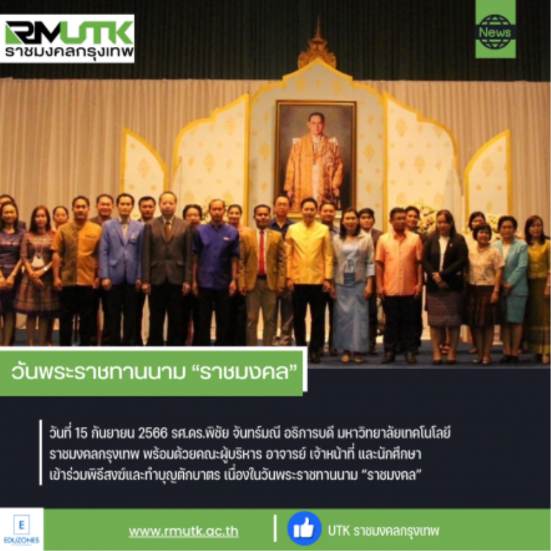 tui sakrapee September 16, 2023 มทร.กรุงเทพ จัดพิธีน้อมรำลึกในพระมหากรุณาธิคุณ วันพระราชทานนาม “ราชมงคล” tui sakrapee September 16, 2023 วันพระราชทานนาม “ราชมงคล” 15 กันยายน วันที่ 15 กันยายน 2566 รศ.ดร.พิชัย จันทร์มณี อธิการบดี มหาวิทยาลัยเทคโนโลยีราชมงคลกรุงเทพ พร้อมด้วยคณะผู้บริหาร อาจารย์ เจ้าหน้าที่ และนักศึกษา เข้าร่วมพิธีสงฆ์และทําบุญตักบาตร เนื่องในวันพระราชทานนาม “ราชมงคล” ณ บริเวณลานโถงใต้หอประชุมใหญ่ พื้นที่บพิตรพิมุข มหาเมฆ จากนั้น คณะผู้บริหาร อาจารย์ เจ้าหน้าที่ และนักศึกษา พร้อมเพรียงกัน ณ หอประชุมใหญ่ เพื่อเข้าสู่พิธีน้อมสํานึก… Continue Reading