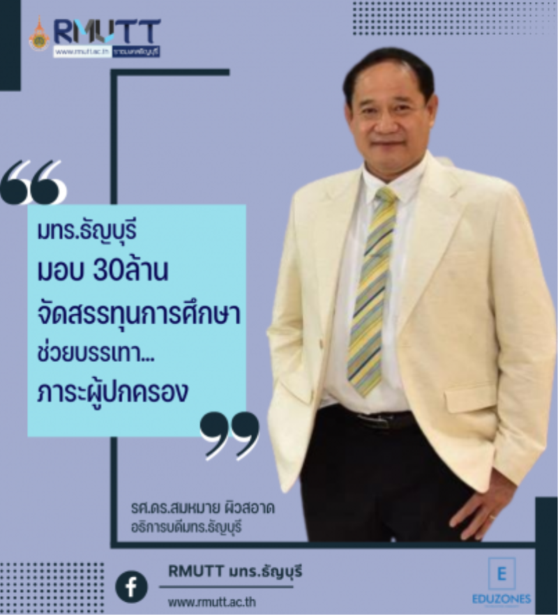 tui sakrapee January 4, 2023 มทร.ธัญบุรี มอบ 30ล้าน จัดสรรทุนการศึกษาช่วยบรรเทาภาระผู้ปกครอง tui sakrapee January 4, 2023 เมื่อวันที่ 4 ม.ค.66 รศ.ดร.สมหมาย ผิวสอาด อธิการบดี มหาวิทยาลัยเทคโนโลยีราชมงคล (มทร.) ธัญบุรี เปิดเผยว่า จากสถานการณ์โควิด-19 ที่ผ่านมา ประกอบกับสภาพเศรษฐกิจในปัจจุบันทำให้หลายครอบครัวประสบปัญหาสภาพคล่องทางการเงิน ดังนั้น เพื่อเป็นการช่วยเหลือผู้ปกครอง มทร.ธัญบุรี จึงมีการจัดสรรทุนการศึกษาให้กับนักศึกษาอย่างต่อเนื่อง โดยในปีการศึกษา 2564 ที่ผ่านมา มทร.ธัญบุรี ได้จัดสรรวงเงินสำหรับทุนการศึกษา ทั้งสิ้น 28,905,000 บาท ประกอบด้วย ทุนภายใน 2,823 ทุน เป็นเงินจำนวน 21,067,300 บาท… Continue Reading