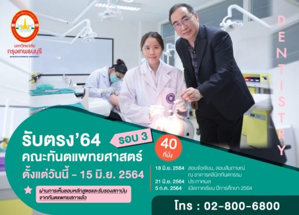 tui sakrapee April 4, 2021 มหาวิทยาลัยกรุงเทพธนบุรี รับตรง “ทันตะ” รอบ 3 จำกัด 40 ที่นั่ง tui sakrapee April 4, 2021 รองศาสตราจารย์ ดร.บังอร เบ็ญจาธิกุล อธิการบดีมหาวิทยาลัยกรุงเทพธนบุรี เผยว่า คณะทันตแพทยศาสตร์ มหาวิทยาลัยกรุงเทพธนบุรี กำลังเปิดรับสมัครบุคคลเข้าศึกษาในหลักสูตรทันตแพทยศาสตรบัณฑิต ปีการศึกษา 2564 (รับตรงรอบที่ 3) จำนวน 40 คน รับสมัครตั้งแต่บัดนี้ ถึงวันที่ 15 มิถุนายน พ.ศ. 2564 โดยสามารถสมัครได้ด้วยตนเอง ที่ฝ่ายประชาสัมพันธ์และรับสมัครนักศึกษา มหาวิทยาลัยกรุงเทพธนบุรี หรือ กรอกใบสมัครผ่านทางเว็บไซต์ http://admission.bkkthon.ac.th สอบถามข้อมูลการรับสมัครเพิ่มเติมได้ที่ งานเลขานุการ คณะทันตแพทยศาสตร์ มหาวิทยาลัยกรุงเทพธนบุรี โทร 081-635-2536 … Continue Reading