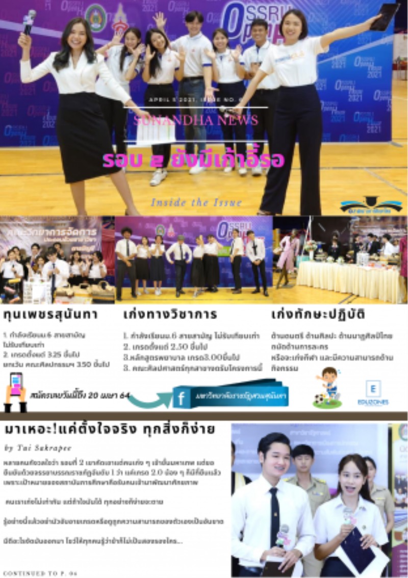 สวนสุนันทาเปิดเวที HIDA รุ่นที่ 5 รวมแพทย์ผู้เชี่ยวชาญถ่ายทอดความรู้ “โรคใกล้ตัว” ชี้แนวทางดูแลตนเอง ลดเสี่ยงโรคเรื้อรังคนไทย tui sakrapeeDecember 19, 2025 📰 ราชภัฏสวนสุนันทาเปิดเวที HIDA รุ่นที่ 5 รวมแพทย์ผู้เชี่ยวชาญถ่ายทอดความรู้ “โรคใกล้ตัว” ชี้แนวทางดูแลตนเอง ลดเสี่ยงโรคเรื้อรังคนไทย เมื่อวันพฤหัสบดีที่ 18 ธันวาคม 2568 ณ โรงแรมชาเทรียม ริเวอร์ไซด์ กรุงเทพฯหลักสูตรผู้บริหารระดับสูงด้านการพัฒนาคุณภาพบริการสุขภาพและความงาม (HIDA)… มหาวิทยาลัยกรุงเทพ จัดงาน “BU Game On! Expo x Job Fair for Game Industry 2025” เวทีพิสูจน์ฝีมือนักพัฒนาเกมรุ่นใหม่ tui sakrapeeDecember 18, 2025 มหาวิทยาลัยกรุงเทพ จัดงาน “BU Game On! Expo x Job Fair for Game Industry 2025″ เวทีพิสูจน์ฝีมือนักพัฒนาเกมรุ่นใหม่ เชื่อมโลกการศึกษาสู่อุตสาหกรรมจริง มหาวิทยาลัยกรุงเทพ จัดงาน… มนุษยศาสตร์ฯ สวนสุนันทา ชวนร่วมงานประชุมวิชาการระดับนานาชาติ ICAC 2026 ด้านชุมชนอาเชียน tui sakrapeeDecember 18, 2025 ขอเชิญร่วมงานประชุมวิชาการระดับนานาชาติ ICAC 2026 ด้านชุมชนอาเชียน ณ มหาวิทยาลัยราชภัฏสวนสุนันทา คณะมนุษยศาสตร์และสังคมศาสตร์ มหาวิทยาลัยราชภัฏสวนสุนันทา ร่วมกับเครือข่ายพันธมิตรทางวิชาการระดับนานาชาติ เตรียมจัดงานประชุมวิชาการระดับนานาชาติ ICAC 2026 (International Conference on Asian Communities) ในวันจันทร์ที่… ถ้าคุณชอบแชร์นี่คือโอกาส! “บริติช เคานซิล” ขยายเวลารับสมัครโครงการ “IELTS Prize 2025” ถึง 31 ธ.ค. นี้ ลุ้นชิงรางวัลรวม 100,000 บาท EZ WebmasterDecember 18, 2025 ถ้าคุณชอบแชร์นี่คือโอกาส! “บริติช เคานซิล” ขยายเวลารับสมัครโครงการ “IELTS Prize 2025” ถึง 31 ธ.ค. นี้ ลุ้นชิงรางวัลรวม 100,000 บาท พร้อมโอกาสร่วมงานกับสถาบันการสอบภาษาอังกฤษระดับโลก กรุงเทพฯ 17 ธันวาคม… Search for: Search Tag: รอบที่ 2 โควตา tui sakrapee April 20, 2022 สอบสัมภาษณ์ออนไลน์ รอบ 2 โควตา’65 น้องใหม่มุ่งมั่น อบอวลด้วยรอยยิ้ม ก้าวสู่รั้ว ‘สวนสุนันทา’ tui sakrapee April 20, 2022 20 เมษายน 2565 มหาวิทยาลัยราชภัฏสวนสุนันทา โดยฝ่ายรับเข้าศึกษา กองบริการการศึกษา สำนักงานอธิการบดี จัดสอบสัมภาษณ์คัดเลือกผู้สมัครเข้าศึกษาต่อในระดับอุดมศึกษา มหาวิทยาลัยราชภัฏสวนสุนันทา ระดับปริญญาตรี ภาคปกติ รอบที่ 2 โควตา ประจำปีการศึกษา 2565 โดยเป็นการสอบสัมภาษณ์ผ่านระบบออนไลน์ เพื่อเป็นการป้องกันการแพร่ระบาดของเชื้อไวรัสโคโรนา 2019 (โควิด-19) ถึงแม้จะเป็นการสัมภาษณ์ผ่านระบบออนไลน์ ผู้เข้ารับการสอบสัมภาษณ์ต่างตั้งใจตอบข้อซักถามและแลกเปลี่ยนความคิดเห็นกับอาจารย์ผู้สอบด้วยความมุ่งมั่น ทำให้บรรยากาศเต็มไปด้วยรอยยิ้ม ความอบอุ่น และมีความเป็นกันเอง รับรอบที่ 3 admission วันที่ 2 – 10… Continue Reading tui sakrapee April 5, 2021 โค้งสุดท้าย! รอบ 2 โควตา “สวนสุนันทา” สมัครด่วนถึง 20 เมษายนนี้เท่านั