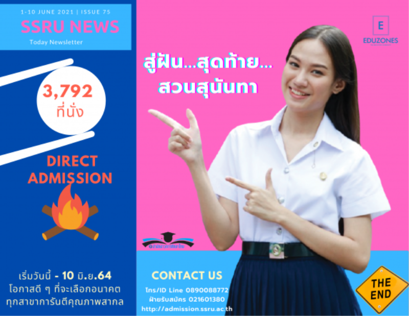 สวนสุนันทาเปิดเวที HIDA รุ่นที่ 5 รวมแพทย์ผู้เชี่ยวชาญถ่ายทอดความรู้ “โรคใกล้ตัว” ชี้แนวทางดูแลตนเอง ลดเสี่ยงโรคเรื้อรังคนไทย tui sakrapeeDecember 19, 2025 📰 ราชภัฏสวนสุนันทาเปิดเวที HIDA รุ่นที่ 5 รวมแพทย์ผู้เชี่ยวชาญถ่ายทอดความรู้ “โรคใกล้ตัว” ชี้แนวทางดูแลตนเอง ลดเสี่ยงโรคเรื้อรังคนไทย เมื่อวันพฤหัสบดีที่ 18 ธันวาคม 2568 ณ โรงแรมชาเทรียม ริเวอร์ไซด์ กรุงเทพฯหลักสูตรผู้บริหารระดับสูงด้านการพัฒนาคุณภาพบริการสุขภาพและความงาม (HIDA)… มหาวิทยาลัยกรุงเทพ จัดงาน “BU Game On! Expo x Job Fair for Game Industry 2025” เวทีพิสูจน์ฝีมือนักพัฒนาเกมรุ่นใหม่ tui sakrapeeDecember 18, 2025 มหาวิทยาลัยกรุงเทพ จัดงาน “BU Game On! Expo x Job Fair for Game Industry 2025″ เวทีพิสูจน์ฝีมือนักพัฒนาเกมรุ่นใหม่ เชื่อมโลกการศึกษาสู่อุตสาหกรรมจริง มหาวิทยาลัยกรุงเทพ จัดงาน… มนุษยศาสตร์ฯ สวนสุนันทา ชวนร่วมงานประชุมวิชาการระดับนานาชาติ ICAC 2026 ด้านชุมชนอาเชียน tui sakrapeeDecember 18, 2025 ขอเชิญร่วมงานประชุมวิชาการระดับนานาชาติ ICAC 2026 ด้านชุมชนอาเชียน ณ มหาวิทยาลัยราชภัฏสวนสุนันทา คณะมนุษยศาสตร์และสังคมศาสตร์ มหาวิทยาลัยราชภัฏสวนสุนันทา ร่วมกับเครือข่ายพันธมิตรทางวิชาการระดับนานาชาติ เตรียมจัดงานประชุมวิชาการระดับนานาชาติ ICAC 2026 (International Conference on Asian Communities) ในวันจันทร์ที่… ถ้าคุณชอบแชร์นี่คือโอกาส! “บริติช เคานซิล” ขยายเวลารับสมัครโครงการ “IELTS Prize 2025” ถึง 31 ธ.ค. นี้ ลุ้นชิงรางวัลรวม 100,000 บาท EZ WebmasterDecember 18, 2025 ถ้าคุณชอบแชร์นี่คือโอกาส! “บริติช เคานซิล” ขยายเวลารับสมัครโครงการ “IELTS Prize 2025” ถึง 31 ธ.ค. นี้ ลุ้นชิงรางวัลรวม 100,000 บาท พร้อมโอกาสร่วมงานกับสถาบันการสอบภาษาอังกฤษระดับโลก กรุงเทพฯ 17 ธันวาคม… Search for: Search Tag: รอบที่ 4 Direct Admission tui sakrapee May 26, 2022 4,685 ที่นั่งยังรอ! รอบที่ 4 สุดท้าย Direct Admission “สวนสุนันทา” เปิดกว้างก้าวสู่อนาคตถึง 31 พ.ค.นี้ tui sakrapee May 26, 2022 มหาวิทยาลัยราชภัฏสวนสุนันทา เปิดรับสมัครบุคคลเข้าศึกษาในมหาวิทยาลัยราชภัฏสวนสุนันทาภาคปกติ ระดับปริญญาตรี ประจำปีการศึกษา 2565 (รอบที่ 4 Direct Admission) ระหว่างวันที่ 20 – 31 พฤษภาคม 2565 โดยมีรายละเอียดเกี่ยวกับการรับสมัครสอบคัดเลือกดังนี้ จำนวนรับนักศึกษา คณะครุศาสตร์ 10 คน คณะเทคโนโลยีอุตสาหกรรม 15 คน คณะวิทยาศาสตร์และเทคโนโลยี 690 คน คณะเทคโนโลยีอุตสาหกรรม 135 คน คณะมนุษยศาสตร์และสังคมศาสตร์ 280 คน… Continue Reading tui sakrapee May 18, 2022 ‘โลจิสติกส์ สวนสุนันทา’ เปิดรับรอบที่ 4 Direct Admission 20 พ.ค.นี้ มีที่นั่งจำกัด!! tui sakrapee May 18, 2022 วิทยาลัยโลจิสติกส์และซัพพลายเชน มหาวิทยาลัยราชภัฏสวนสุนันทา เตรียมเปิดรับสมัคร รอบที่ 4 Direct Admission … กันแล้วจ้า !!! เปิดรับสมัครตั้งแต่วันที่ 20-31 พ.ค. 65 น้องๆสามารถเข้าไปสมัครได้ที่เว็บไซต์ https://admission.ssru.ac.th สอบถา