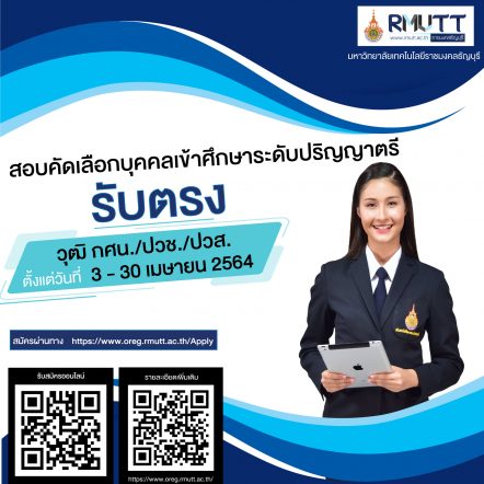 tui sakrapee April 28, 2021 โค้งสุดท้าย! มทร.ธัญบุรี เปิดรับตรง – TCAS2 โควตา ปิดรับสมัครวันสุดท้าย 30 เม.ย.นี้ tui sakrapee April 28, 2021 มหาวิทยาลัยเทคโนโลยีราชมงคลธัญบุรี รับสมัครผู้สนใจเข้าศึกษาต่อ ระดับปริญญาตรี รับตรง : กศน./ปวช./ปวส. รับสมัครตั้งแต่วันที่ 3 – 30 เมษายน 2564 TCAS2 โควตา เปิดรับสมัครตั้งแต่วันที่ 28 ก.พ. – 30 เม.ย. 64 อ่านรายละเอียดเพิ่มเติม ได้ที่ www.oreg.rmutt.ac.th/Apply รับสมัครออนไลน์ผ่านเว็บไซค์ ลิงค์สำหรับรับสมัคร https://apply.rmutt.ac.th Continue Reading