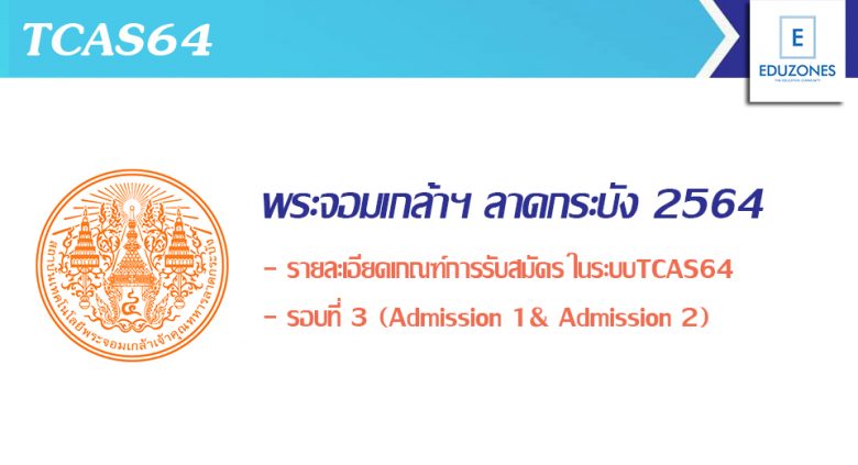 EZ Webmaster March 26, 2021 #TCAS64 ลาดกระบัง เปิดรับสมัครนศ.ปตรี รอบที่ 3 (Admission 1-2) ตั้งแต่วันที่ 7-15 พ.ค. 64 EZ Webmaster March 26, 2021 สถาบันเทคโนโลยีพระจอมเกล้าเจ้าคุณทหารลาดกระบัง เปิดรับสมัครคัดเลือกบุคคลเพื่อเข้าศึกษาต่อในระดับปริญญาตรี รอบที่ 3 (Admission 1 & Admission 2) ประจำปีการศึกษา 2564 โดยจะเปิดรับสมัครตั้งแต่วันที่ 7-15 พฤษภาคม 2564 คณะที่เปิดรับสมัคร Admission 1 -คณะวิศวกรรมศาสตร์ -คณะวิทยาศาสตร์ -คณะสถาปัตยกรรมศาสตร์ -คณะบริหารธุรกิจ -คณะเทคโนโลยีสารสนเทศ -คณะอุตสาหกรรมอาหาร -คณะครุศาสตร์อุตสาหกรรมและเทคโนโลยี -คณะเทคโนโลยีการเกษตร -วิทยาลัยนวัตกรรมการผลิตขั้นสูง -วิทยาลัยนาโนเทคโนโลยีพระจอมเกล้าลาดกระบัง -วิทยาลัยอุตสาหกรรมการบินนานาชาติ -วิทยาลัยวิศวกรรมสังคีต -วิทยาเขตชุมพรเขตรอุดมศักดิ์… Continue Reading