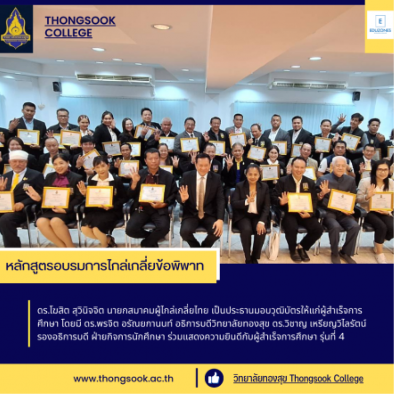 สวนสุนันทาเปิดเวที HIDA รุ่นที่ 5 รวมแพทย์ผู้เชี่ยวชาญถ่ายทอดความรู้ “โรคใกล้ตัว” ชี้แนวทางดูแลตนเอง ลดเสี่ยงโรคเรื้อรังคนไทย tui sakrapeeDecember 19, 2025 📰 ราชภัฏสวนสุนันทาเปิดเวที HIDA รุ่นที่ 5 รวมแพทย์ผู้เชี่ยวชาญถ่ายทอดความรู้ “โรคใกล้ตัว” ชี้แนวทางดูแลตนเอง ลดเสี่ยงโรคเรื้อรังคนไทย เมื่อวันพฤหัสบดีที่ 18 ธันวาคม 2568 ณ โรงแรมชาเทรียม ริเวอร์ไซด์ กรุงเทพฯหลักสูตรผู้บริหารระดับสูงด้านการพัฒนาคุณภาพบริการสุขภาพและความงาม (HIDA)… มหาวิทยาลัยกรุงเทพ จัดงาน “BU Game On! Expo x Job Fair for Game Industry 2025” เวทีพิสูจน์ฝีมือนักพัฒนาเกมรุ่นใหม่ tui sakrapeeDecember 18, 2025 มหาวิทยาลัยกรุงเทพ จัดงาน “BU Game On! Expo x Job Fair for Game Industry 2025″ เวทีพิสูจน์ฝีมือนักพัฒนาเกมรุ่นใหม่ เชื่อมโลกการศึกษาสู่อุตสาหกรรมจริง มหาวิทยาลัยกรุงเทพ จัดงาน… มนุษยศาสตร์ฯ สวนสุนันทา ชวนร่วมงานประชุมวิชาการระดับนานาชาติ ICAC 2026 ด้านชุมชนอาเชียน tui sakrapeeDecember 18, 2025 ขอเชิญร่วมงานประชุมวิชาการระดับนานาชาติ ICAC 2026 ด้านชุมชนอาเชียน ณ มหาวิทยาลัยราชภัฏสวนสุนันทา คณะมนุษยศาสตร์และสังคมศาสตร์ มหาวิทยาลัยราชภัฏสวนสุนันทา ร่วมกับเครือข่ายพันธมิตรทางวิชาการระดับนานาชาติ เตรียมจัดงานประชุมวิชาการระดับนานาชาติ ICAC 2026 (International Conference on Asian Communities) ในวันจันทร์ที่… ถ้าคุณชอบแชร์นี่คือโอกาส! “บริติช เคานซิล” ขยายเวลารับสมัครโครงการ “IELTS Prize 2025” ถึง 31 ธ.ค. นี้ ลุ้นชิงรางวัลรวม 100,000 บาท EZ WebmasterDecember 18, 2025 ถ้าคุณชอบแชร์นี่คือโอกาส! “บริติช เคานซิล” ขยายเวลารับสมัครโครงการ “IELTS Prize 2025” ถึง 31 ธ.ค. นี้ ลุ้นชิงรางวัลรวม 100,000 บาท พร้อมโอกาสร่วมงานกับสถาบันการสอบภาษาอังกฤษระดับโลก กรุงเทพฯ 17 ธันวาคม… Search for: Search Tag: วิทยาลัยทองสุข tui sakrapee September 17, 2023 วิทยาลัยทองสุข มอบวุฒิบัตรแก่ผู้สำเร็จการศึกษา หลักสูตรอบรมการไกล่เกลี่ยข้อพิพาท รุ่นที่ 4 tui sakrapee September 17, 2023 วันที่ 16 กันยายน 2566 วิทยาลัยทองสุข จัดอบรมหลักสูตรอบรมการไกล่เกลี่ยข้อพิพาทตามพระราชบัญญัติการไกล่เกลี่ยข้อพิพาท พ.ศ. 2562 รุ่นที่ 4 ตั้งแต่วันที่ 2,3,9,10,16 กันยายน 2566 รวมเป็นเวลา 5 วัน มีผู้เข้าร่วมอบรมทั้งหมด 51 คน ในการนี้ ดร.โฆสิต สุวินิจจิต นายกสมาคมผู้ไกล่เกลี่ยไทย ได้เป็นประธานมอบวุฒิบัตรให้แก่ผู้สำเร็จการศึกษา โดยมี ดร.พรจิต อรัณยกานนท์ อธิการบดี ดร.วิชาญ เหรียญวิไลรัตน์ รองอธิการบดี… Continue Reading tui sakrapee September 9, 2023 อธิบดีกรมคุ้มครองสิทธิและเสรีภาพ ให้เกียรติเป็นวิทยากรบรรยายพิเศษให้นักศึกษาผู้อบรมหลักสูตรไกล่เกลี่ยข้อพิพาทฯ รุ่น 4 วิทยาลัยทองสุข tui sakrapee September 9, 2023 นายเรืองศักดิ์ สุวารี อธิบดีกรมคุ้มครองสิทธิและเสรีภาพ ให้เกียรติเป็นวิทยากรบรรยายพิเศษให้นักศึกษาผู้อบร