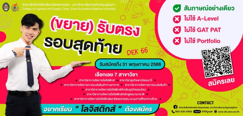 tui sakrapee July 21, 2023 โอกาสพิเศษ Dek67 “โลจิสติกส์ สวนสุนันทา” เปิดรับนักศึกษาใหม่ ในหลักสูตรปฏิบัติจริง ก้าวสู่ความสำเร็จจริง tui sakrapee July 21, 2023 วิทยาลัยโลจิสติกส์และซัพพลายเชน มหาวิทยาลัยราชภัฏสวนสุนันทา เปิดรับสมัครนักศึกษาใหม่ ในหลักสูตรที่ตอบโจทย์โลกยุคปัจจุบันและสนองตอบต่อทักษะอาชีพในโลกอนาคต เริ่มรับสมัครตั้งแต่บัดนี้เป็นต้นไป DEK67 รับตรง สาขาการจัดการโลจิสติกส์หลักสูตรนานาชาติ โอกาสสำหรับผู้ที่สนใจทำงานด้านธุรกิจระหว่างประเทศ ขนส่ง นำเข้าสินค้าระหว่างประเทศ จัดซื้อต่างประเทศ ตำแหน่งงานที่มีรายได้สูงจากบริษัทชั้นนำ สนใจ Scan Qr Code เกรดเฉลี่ย 2.00 สัมภาษณ์เท่านั้น ไม่ใช้ Portfolio Dek67 รอบรับตรงสาขาการจัดการโลจิสติกส์ เมื่อโลกขับเคลื่อนด้วยโลจิสติกส์ กำลังคนจึงมีความต้องการสูง โอกาสในการทำงานกับบริษัทชั้นนำ รายได้สูง สนใจ Scan Qr code… Continue Reading