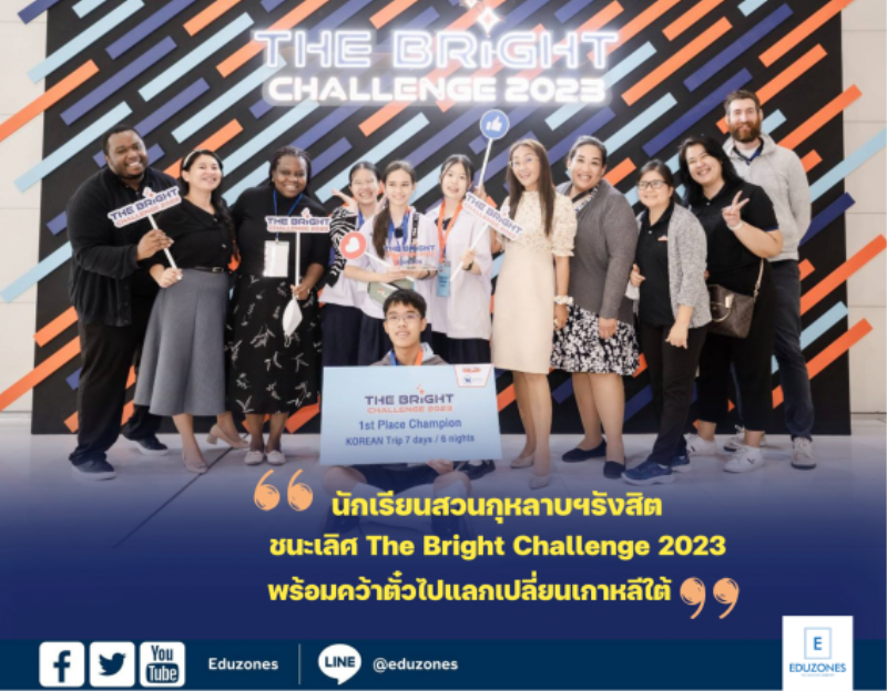นักเรียนสวนกุหลาบฯรังสิต โชว์ทักษะภาษาอังกฤษระดับชาติ ชนะเลิศ The Bright Challenge 2023 พร้อมบินลัดฟ้าไปแลกเปลี่ยนเรียนรู้ที่เกาหลีใต้ 7 วัน 6 คืน