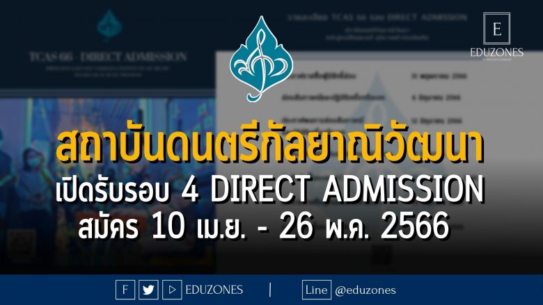 EZ Webmaster May 18, 2023 สถาบันดนตรีกัลยาณิวัฒนา เปิดรับรอบ 4 DIRECT ADMISSION : สมัคร 10 เมษายน. – 26 พฤษภาคม 2566 EZ Webmaster May 18, 2023 สถาบันดนตรีกัลยาณิวัฒนา เปิดรับรอบ 4 DIRECT ADMISSION : สมัคร 10 เมษายน. – 26 พฤษภาคม 2566 . คุณสมบัติ GPAX 4 ภาคเรียน ไม่ต่ำกว่า 2.00 หากสอบเทียบวุฒิม.ปลายระบบบอมเริกัน ต้องมีผลการสอบแต่ละรายวิชาไม่น้อยกว่า 145 คะแนน และมีผลคะแนนรวมไม่น้อยกว่า 640 คะแนน . เกณฑ์คะแนน สอบภาคทฤษฎี 30% การปฏิบัติเครื่องมือเอก… Continue Reading