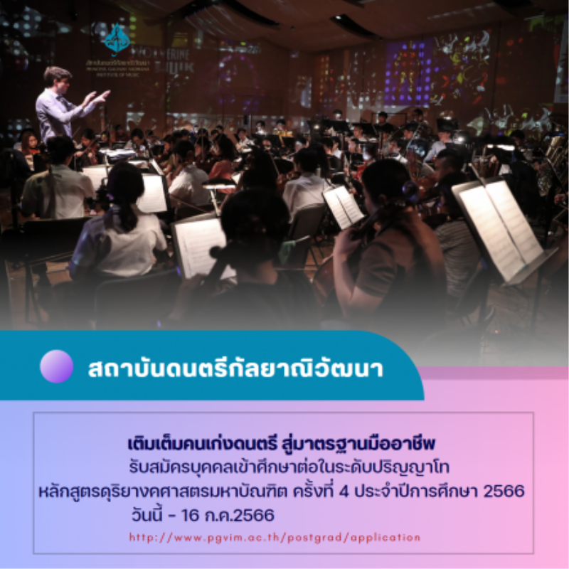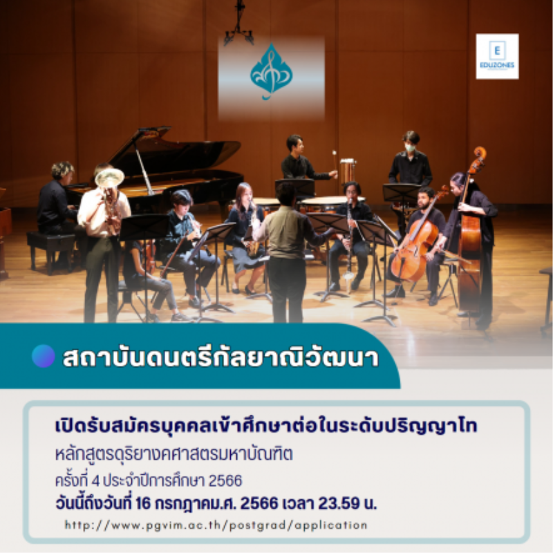 tui sakrapee June 26, 2023 เติมเต็มมืออาชีพ! สถาบันดนตรีกัลยาณิวัฒนา เปิดรับเข้าศึกษาต่อปริญญาโท หลักสูตรดุริยางคศาสตรมหาบัณฑิต tui sakrapee June 26, 2023 สถาบันดนตรีกัลยาณิวัฒนา รับสมัครบุคคลเข้าศึกษาต่อในระดับปริญญาโท หลักสูตรดุริยางคศาสตรมหาบัณฑิต ครั้งที่ 4 ประจําปีการศึกษา 2566 1. คุณสมบัติของผู้สมัคร 1.1 มีวุฒิการศึกษาระดับปริญญาตรีขึ้นไป ในสาขาวิชาดนตรีหรือเกี่ยวข้อง และมีผลการเรียนดี (คะแนน เฉลี่ยไม่ต่ำกว่า 3.00 ในระบบฐานคะแนนเต็ม 4.00) หรือเป็นผู้มีประสบการณ์ด้านดนตรีในระดับสูง เช่น เคยได้รับ รางวัลการประกวด แข่งขัน หรือจัดแสดงผลงานในระดับชาติ นานาชาติ ฯลฯ โดยผู้สมัครต้องส่งแฟ้มสะสมผลงาน (Portfolio) พร้อมทั้งหัวข้อการศึกษาที่สนใจ (Topic Statement) เป็นหลักฐานประกอบการสมัครด้วย… Continue Reading