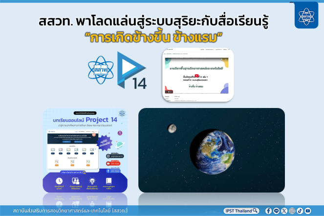 สสวท. ชวนครูและนักเรียนเปิดบทเรียน “ข้างขึ้น ข้างแรม” เข้าใจปรากฏการณ์ดาราศาสตร์ใกล้ตัวในชั้นเรียน  สถาบันส่งเสริมการสอนวิทยาศาสตร์และเทคโนโลยี (สสวท.) เชิญชวนครูและนักเรียนร่วมเปิดประสบการณ์การเรียนรู้ดาราศาสตร์ผ่านบทเรียนออนไลน์ Project 14 ของ สสวท. เรื่อง “ข้างขึ้น ข้างแรม” (หนังสือรายวิชาพื้นฐานวิทยาศาสตร์และเทคโนโลยี ม.3 เล่ม 1) เพื่อไขคำตอบว่าเหตุใดบางวันเราจึงมองเห็นดวงจันทร์ได้แม้ในเวลากลางวัน พร้อมทำความเข้าใจตำแหน่งการโคจรของดวงจันทร์ ความสัมพันธ์กับดวงอาทิตย์ และการสังเกตท้องฟ้าจริง ที่ครูสามารถนำไปใช้เป็นสื่อประกอบการสอนในห้องเรียนได้ทันที ช่วยให้นักเรียนได้เรียนรู้จากเหตุการณ์รอบตัวอย่างสนุกและเห็นภาพมากขึ้น คลิกเรียนรู้ได้ที่ https://proj14.ipst.ac.th/m3/m3-sci-book1/sci-m3b1-024/