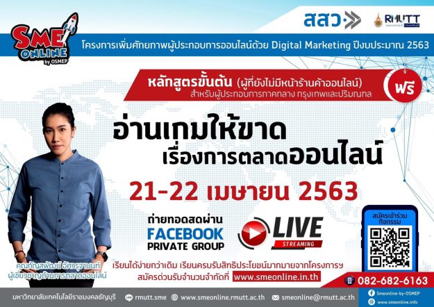 tui sakrapee April 15, 2020 สสว.-มทร.ธัญบุรีเพิ่มศักยภาพผู้ประกอบการ จัดเรียนออนไลน์ ฟรี!!! tui sakrapee April 15, 2020 ? มหาวิทยาลัยเทคโนโลยีราชมงคลธัญบุรี ร่วมกับ สำนักงานส่งเสริมวิสาหกิจขนาดกลางและขนาดย่อม ? ภายใต้โครงการ โครงการเพิ่มศักยภาพผู้ประกอบการออนไลน์ด้วย Digital Marketing ปี 2563 ?? ขอเชิญผู้ประกอบการสมัครเข้าร่วมกิจกรรมอบรมออนไลน์ฟรี ‼️‼️ #สำหรับผู้ประกอบการภาคกลางกรุงเทพและปริมณฑล เรียนออนไลน์แบบเจาะลึกที่บ้าน ?? สนใจสามารถเลือกเรียนได้ท่านละ 1 หลักสูตร 1. หลักสูตรขั้นต้น (ผู้ที่ยังไม่มีหน้าร้านค้าออนไลน์) หัวข้อ “อ่านเกมให้ขาด เรื่องการตลาดออนไลน์” เข้าใจเรื่องการตลาดออนไลน์ และเปิดร้านค้าออนไลน์ใช้งานได้จริง เต็มอิ่มกับเนื้อหา 12 ชั่วโมง ?… Continue Reading