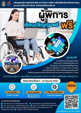 tui sakrapee June 12, 2023 “โลจิสติกส์ สวนสุนันทา” ขยายเวลาเปิดรับสมัครผู้พิการ ประเภทบุคคลที่มีความบกพร่องทางร่างกาย หรือการเคลื่อนไหว หรือสุขภาพ เข้าศึกษาต่อปริญญาตรี ฟรี tui sakrapee June 12, 2023 “โลจิสติกส์ สวนสุนันทา” ขยายเวลาเปิดรับสมัครผู้พิการประเภทบุคคลที่มีความบกพร่องทางร่างกาย หรือการเคลื่อนไหวหรือสุขภาพ เข้าศึกษาต่อปริญญาตรี หลักสูตรบริหารธุรกิจบัณฑิต สาขาวิชาการจัดการโลจิสติกส์และซัพพลายเชน (ระบบการศึกษาทางไกล) สำหรับนักศึกษาพิการฟรี คุณสมบัติ จบการศึกษาระดับมัธยมศึกษาปีที่ 6 หรือระดับประกาศนียบัตรวิชาชีพ (ปวช.) หรือระดับประกาศนียบัตรวิชาชีพชั้นสูง (ปวส.) หรือกศน. หรือเทียบเท่า (จากสถาบันที่ ก.พ. รับรอง) และต้องไม่เคยสำเร็จการศึกษาหรือศึกษาระดับปริญญาตรี โดยได้รับทุนอุดหนุนการศึกษาสำหรับคนพิการจากสถาบันการศึกษาใด ๆ มาก่อน เปิดรับสมัครตั้งแต่วันนี้ – 22 มิถุนายน 2566 สมัครเลย !! https://docs.google.com/…/1FAIpQLScGbOgx6Nignx…/viewform ระยะเวลาเรียน… Continue Reading