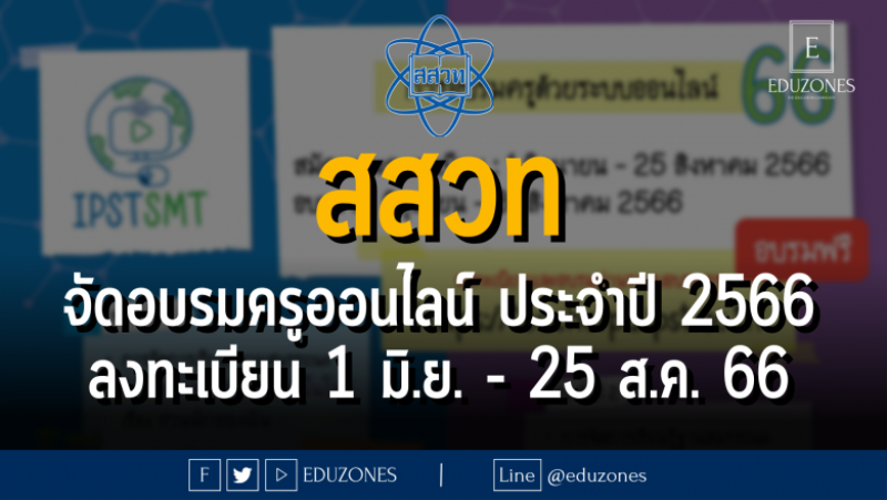 EZ Webmaster May 19, 2023 สสวท จัดอบรมครูออนไลน์ ประจำปี 2566 : ลงทะเบียน 1 มิ.ย. – 25 ส.ค. 66 EZ Webmaster May 19, 2023 สสวท จัดอบรมครูออนไลน์ ประจำปี 2566 : ลงทะเบียน 1 มิ.ย. – 25 ส.ค. 66 . หลักสูตร วิทยาศาสตร์และเทคโนโลยี ช่วงชั้นที่ 1 เรื่อง สวนผักของฉัน รุ่นที่ 2 คณิตศาสตร์ ช่วงชั้นที่ 1 เรื่อง เจ้าสัวตัวน้อย รุ่นที่ 2 วิทยาศาสตร์และเทคโนโลยี ช่วงชั้นที่ 2 เรื่อง… Continue Reading