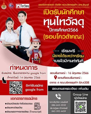 tui sakrapee May 31, 2023 สาขาวิชาการตลาด มทร.ธัญบุรี ร่วมกับ ไทวัสดุ เปิดรับนักศึกษาหลักสูตรค้าปลีก เรียนฟรี มีรายได้ระหว่างเรียน จบแล้วมีงานทำทันที tui sakrapee May 31, 2023 สาขาวิชาการตลาด มทร.ธัญบุรี ร่วมกับ ไทวัสดุ เปิดรับนักศึกษาหลักสูตรค้าปลีก ปีการศึกษา 2566 รอบโควต้าคณะ🎉 สมัครและยื่นเอกสารผ่าน google from ตั้งแต่วันนี้-14 มิถุนายน 2566 ตามลิงก์ 👇 https://forms.gle/EJwnJkSUKhAxSYHQA “เรียนฟรี มีรายได้ระหว่างเรียน จบแล้วมีงานทำทันที” สอบถามรายละเอียด เพิ่มเติม: ผศ.สัญจิตา พรมโชติ 0866633559 ดร. ณฐมน บัวพรมมี 0623924459 Continue Reading