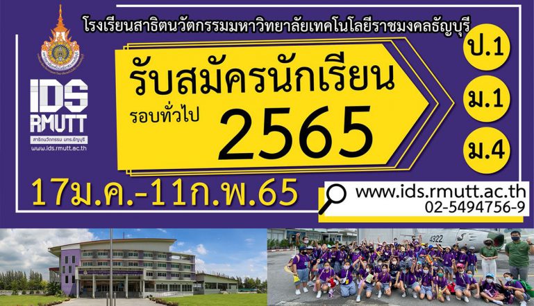 tui sakrapee December 29, 2021 โรงเรียนสาธิตนวัตกรรมมหาวิทยาลัยเทคโนโลยีราชมงคลธัญบุรี รับสมัครนักเรียนปีการศึกษา 2565 รอบทั่วไปและรอบโควตา เริ่ม 4 ม.ค.65 tui sakrapee December 29, 2021 โรงเรียนสาธิตนวัตกรรมมหาวิทยาลัยเทคโนโลยีราชมงคลธัญบุรี ประกาศรับสมัครนักเรียนปีการศึกษา 2565 ในรอบทั่วไปและรอบโควตา การรับสมัครในรอบทั่วไป เริ่มวันที่ 17 ม.ค. – 11 ก.พ. 2565 ศึกษาขั้นตอนการสมัครได้ที่ https://www.ids.rmutt.ac.th/sisa/ **ระบบรับสมัครจะเปิดในวันแรกของการรับสมัคร** รายละเอียดการรับสมัคร ระดับชั้นประถมศึกษาปีที่ 1 https://www.ids.rmutt.ac.th/regn165/ ระดับชั้นมัธยมศึกษาปีที่ 1 และ ชั้นมัธยมศึกษาปีที่ 4 https://www.ids.rmutt.ac.th/regnm1465/ …………………….. การรับสมัครรอบโควตา เริ่มวันที่ 4 – 14 มกราคม… Continue Reading