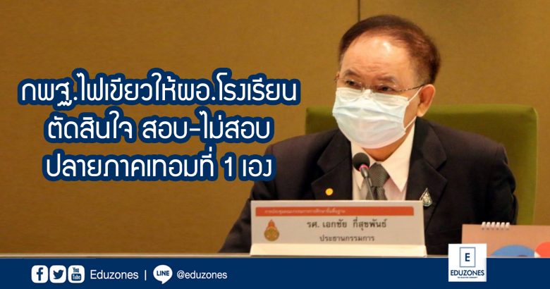EZ Webmaster August 14, 2021 กพฐ.เห็นชอบให้ผอ.โรงเรียนตัดสินใจสอบ-ไม่สอบปลายภาคเทอม 1 เอง EZ Webmaster August 14, 2021 ที่ประชุม กพฐ. เห็นชอบให้ ผอ.โรงเรียน ตัดสินใจสอบ-ไม่สอบปลายภาคเทอม 1 พร้อมปรับวิธีประเมินผล แล้วสอบปลายภาคในเทอม 2 แทน เมื่อวันที่ 13 สิงหาคม 2564 ที่ผ่านมา นายเอกชัย กี่สุขพันธ์ ปฏิบัติหน้าที่ประธานคณะกรรมการการศึกษาขั้นพื้นฐาน (กพฐ.) เปิดเผยภายหลังประชุม กพฐ.ผ่านระบบวิดีโอคอนเฟอเรนซ์ ว่า สำนักวิชาการและมาตรฐานการศึกษา สำนักงานคณะกรรมการการศึกษาขั้นพื้นฐาน (สพฐ.) ได้เสนอการจัดการเรียนการสอนในสถานการณ์การแพร่ระบาดของเชื้อไวรัสโคโรนา 2019 หรือโควิด-19 โดยที่ประชุมให้ความเห็นว่าการเรียนการสอนในสถานการณ์นี้ ควรให้อิสระกับโรงเรียนในการนับเวลาเรียน จัดการเรียนการสอน และการวัดและประเมินผลนักเรียน… Continue Reading