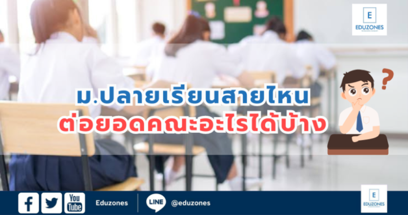EZ Webmaster August 5, 2024 ม.ปลายเรียนต่อสายไหน ต่อยอดมหาวิทยาลัยคณะอะไรได้บ้าง ? EZ Webmaster August 5, 2024 สำหรับน้องๆม.ต้น ที่กำลังเตรียมตัวจะขึ้นม.ปลายแล้วยังไม่รู้ว่า การเรียนม.ปลายนั้นแบ่งแยกสายอย่างไร และแต่ละสายที่จะเรียนนั้นสามารถจะไปต่อยอดการเรียนมหาวิทยาลัยจนถึงการประกอบอาชีพอาชีพอีกด้วย นอกจากนี้ยังมีสายพิเศษเฉพาะโรงเรียน วันนี้ทาง Eduzones จะพาน้องๆมาทำความรู้จักของสายการเรียนของม.ปลายแต่ละสายกันค่ะ ม.ปลาย มีสายการเรียนอะไรบ้าง 1. สายการเรียน วิทย์ – คณิต สายการเรียน วิทย์ – คณิต เน้นการเรียนวิชาวิทยาศาสตร์ ทั้ง ฟิสิกส์ เคมี ชีววิทยา โดยจะได้เรียนภาคทฤษฎีและภาคปฏิบัติ และการเรียนคณิตศาสตร์ ทั้งคณิตศาสตร์พื้นฐานและคณิตศาสตร์เพิ่มเติม เนื้อหาแน่นๆ ส่วนวิชาอื่นๆ อย่างเช่น ภาษาไทย… Continue Reading