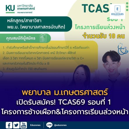 EZ Webmaster October 5, 2025 คณะพยาบาลศาสตร์ มหาวิทยาลัยเกษตรศาสตร์ เปิดรับสมัครนักศึกษาระดับปริญญาตรี TCAS69 รอบที่ 1 (Portfolio) EZ Webmaster October 5, 2025 🩺✨ คณะพยาบาลศาสตร์ มหาวิทยาลัยเกษตรศาสตร์เปิดรับสมัครนักศึกษาระดับปริญญาตรี ประจำปีการศึกษา 2569ผ่านระบบ #TCAS รอบที่ 1 (Portfolio) 🌿 โครงการช้างเผือก 📌 จำนวนรับ: 10 คน คุณสมบัติผู้สมัคร:1️⃣ กำลังศึกษาหรือสำเร็จการศึกษาชั้น ม.6 หรือเทียบเท่า2️⃣ GPAX 5 ภาคเรียน ไม่ต่ำกว่า 3.253️⃣ GPA วิชา วิทยาศาสตร์ ชีววิทยา เคมี คณิตศาสตร์ และภาษาอังกฤษ ไม่ต่ำกว่า… Continue Reading