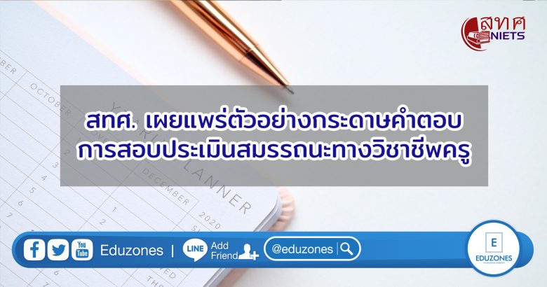 EZ Webmaster February 15, 2021 ด่วน! สทศ. เผยแพร่ตัวอย่างกระดาษคำตอบการสอบประเมินสมรรถนะทางวิชาชีพครู EZ Webmaster February 15, 2021 สทศ. เผยแพร่ตัวอย่างกระดาษคำตอบการสอบประเมินสมรรถนะทางวิชาชีพครู การทดสอบและประเมินสมรรถนะทางวิชาชีพครู ด้านความรู้และประสบการณ์วิชาชีพ ตามมาตรฐานวิชาชีพครู โดยสามารถดาวน์โหลดได้ที่ : https://www.niets.or.th/th/catalog/view/3985 กำหนดการทดสอบและประเมินสมรรถนะวิชาชีพครู ที่มา : สทศ. https://www.niets.or.th/th/catalog/view/3985 Continue Reading