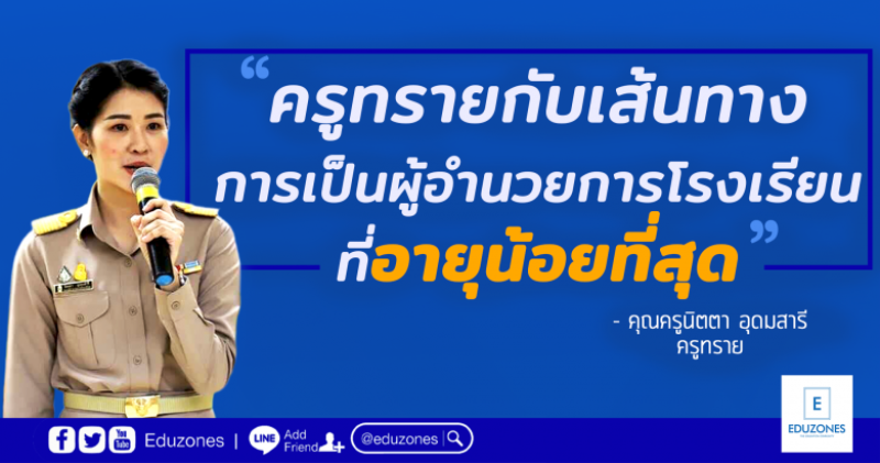 EZ Webmaster January 20, 2021 ครูทรายกับเส้นทางการเป็นผู้อำนวยการโรงเรียนที่อายุน้อยที่สุด EZ Webmaster January 20, 2021 เส้นทางการเป็นผอ.ของครูทราย ครูที่เป็นกระแสบนโลกโซเชียลขณะนี้ จากกระแสบนโลกโซเชียลที่เป็นน่าชื่นชม ณ ขณะนี้ ของคุณครูท่านหนึ่ง ที่รู้จักกันในนาม “ผอ.โรงเรียนที่มีอายุน้อยที่สุด” ซึ่งนับว่าเป็นเรื่องราวที่น่าสนใจของชาวเน็ตเป็นอย่างมาก ทาง Eduzones จึงได้มีโอกาสสัมภาษณ์ถึงเส้นทางสู่การเป็น ผอ.โรงเรียน พร้อมกับการปรับตัวและการรับมือกับการเรียนการสอนในยุคโควิด-19 มาทำความรู้จักกับคุณครูนิตตา อุดมสารี หรือ ครูทราย ปัจจุบันเป็นรองผู้อำนวยการโรงเรียนลาดยาววิทยาคม สังกัดสำนักงานเขตพื้นที่การศึกษามัธยมศึกษาเขต 42 แรงบันดาลใจในการเป็นครู แรงบันดาลใจเกิดจากตอนเรียนมัธยมมีครูภาษาไทยที่สอนเรา เห็นถึงความสามารถและหยิบคุณครูทรายขึ้นมาแข่งขันทักษะต่าง ๆ รวมไปถึงการประกวดพูดสุนทรพจน์มาโดยตลอด ทำให้คุณครูมีทักษะทางภาษาไทยเพิ่มมากขึ้นเรื่อย ๆ พอจบชั้น ม.6 จึงสอบชิงทุนเพชรราชภัฏนครสวรรค์… Continue Reading