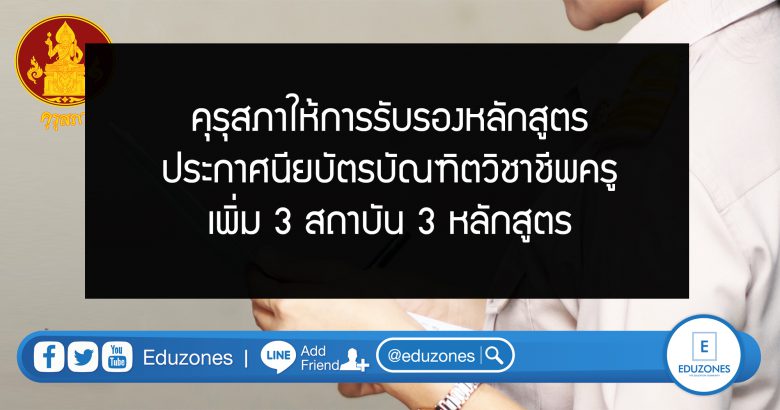 EZ Webmaster August 2, 2020 สรุปผลการประชุมคณะกรรมการคุรุสภา ครั้งที่ 6/2563 EZ Webmaster August 2, 2020 เมื่อวันที่ 31 กรกฎาคม 2563 ที่ผ่านมา รัฐมนตรีว่าการกระทรวงศึกษาธิการ นายณัฏฐพล ทีปสุวรรณ ได้เป็นประธานการประชุมคณะกรรมการคุรุสภา ครั้งที่ 6/2563 โดยมีผลการประชุมสรุปได้ดังนี้ เห็นชอบการรับรองปริญญาทางการศึกษาของสถาบันอุดมศึกษาตามมาตรฐานวิชาชีพ ที่ประชุมเห็นชอบ การรับรองปริญญาทางการศึกษาของสถาบันอุดมศึกษาตามมาตรฐานวิชาชีพ ที่ได้เสนอหลักสูตรต่าง ๆ มาให้คุรุสภารับรอง ดังนี้ –ปริญญาตรีทางการศึกษา (หลักสูตร 5 ปี) ตั้งแต่ปีการศึกษา 2556 –มีสถาบันฯ จำนวน 158 แห่ง เสนอ… Continue Reading