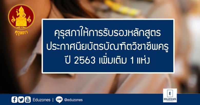 EZ Webmaster September 1, 2020 คุรุสภาให้การรับรองหลักสูตรประกาศนียบัตรบัณฑิตวิชาชีพครู ปี 2563 เพิ่มเติม 1 แห่ง EZ Webmaster September 1, 2020 คณะกรรมการคุรุสภา มีมติในการประชุม ครั้งที่ 6/2563 เมื่อวันที่ 31 กรกฎาคม 2563 ที่ผ่านมา ในมติการรับรองหลักสูตรประกาศนียบัตรบัณฑิตวิชาชีพครู เพิ่มเติม จำนวน 1 แห่ง ได้แก่ ประกาศนียบัตรบัณฑิต สาขาวิชาชีพครู หลักสูตรปรับปรุง พ.ศ. 2562 ของมหาวิทยาลัยราชภัฏภูเก็ต สำหรับจัดการเรียนการสอน ประจำปีการศึกษา 2563 โดยมีแผนการรับนักศึกษา จำนวน 120 คน ทำให้รวมแล้วมีสถาบันและหลักสูตรที่ได้รับการรับรองจำนวน 54 แห่ง… Continue Reading