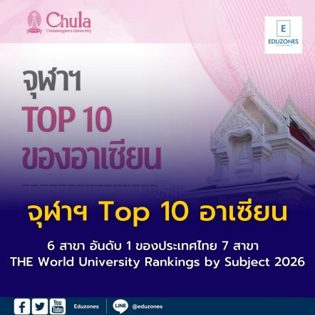 EZ Webmaster February 4, 2026 จุฬาฯ Top 10 อาเซียน 6 สาขา อันดับ 1 ของประเทศไทย 7 สาขา THE World University Rankings by Subject 2026 EZ Webmaster February 4, 2026 จุฬาฯ Top 10 อาเซียน 6 สาขา อันดับ 1 ของประเทศไทย 7 สาขา THE World University Rankings by Subject 2026 จุฬาลงกรณ์มหาวิทยาลัยตอกย้ำบทบาทการเป็นมหาวิทยาลัยชั้นนำในภูมิภาคเอเชียตะวันออกเฉียงใต้และมหาวิทยาลัยอันดับ 1 ของไทย จากผลการจัดอันดับมหาวิทยาลัยที่มีชื่อเสียงของโลก Times Higher Education World University Rankings by Subject 2026 จุฬาลงกรณ์มหาวิทยาลัยมีความ … Continue Reading