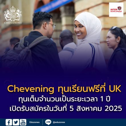 EZ Webmaster July 13, 2025 Chevening ทุนเรียนฟรีที่สหราชอาณาจักร เตรียมเปิดรับ 5 ส.ค.นี้ EZ Webmaster July 13, 2025 Chevening โครงการทุนการศึกษาของรัฐบาลสหราชอาณาจักรที่มอบโอกาสให้กับคนรุ่นใหม่จากทั่วโลกที่มีความสามารถและมีผลการเรียนโดดเด่นได้มาศึกษาต่อปริญญาโทที่สหราชอาณาจักร โดยทุนนี้เป็นการสนับสนุนทางการเงินเต็มจำนวนเป็นระยะเวลา 1 ปี เพื่อช่วยให้นักศึกษามุ่งศึกษาจนประสบผลสำเร็จตามเป้าหมาย รวมถึงได้รับประสบการณ์ใช้ชีวิตที่ดีในสหราชอาณาจักร เตรียมเปิดรับสมัครในวันที่ 5 สิงหาคม 2025 นี้ สิ่งที่จะได้รับจากทุน Chevening -ครอบคลุมเงินค่าเล่าเรียนทั้งหมด -ค่าใช้จ่ายในการดำรงชีวิตในสหราชอาณาจักร -ค่าตั๋วเครื่องบินไป-กลับสหราชอาณาจักร -เข้าร่วมงานกิจกรรม Networking ที่จัดขึ้นโดยเฉพาะสำหรับผู้ที่ได้รับทุนนี้ -การฝึกงาน การเข้าร่วมสัมมนาต่าง ๆ และท่องเที่ยวทั่วสหราชอาณาจักร -โอกาสการในการทำงานเป็นอาสาสมัคร คุณสมบัติเบื้องต้น -เป็นพลเมืองของประเทศที่ได้รับสิทธิ์ทุนชีฟนิ่ง (ซึ่งรวมถึงประเทศไทยด้วย) -เรียนจบระดับปริญญาตรี -มีผลการเรียนดีเยี่ยม -มีประสบการณ์การทำงานอย่างน้อย 2 ปี… Continue Reading