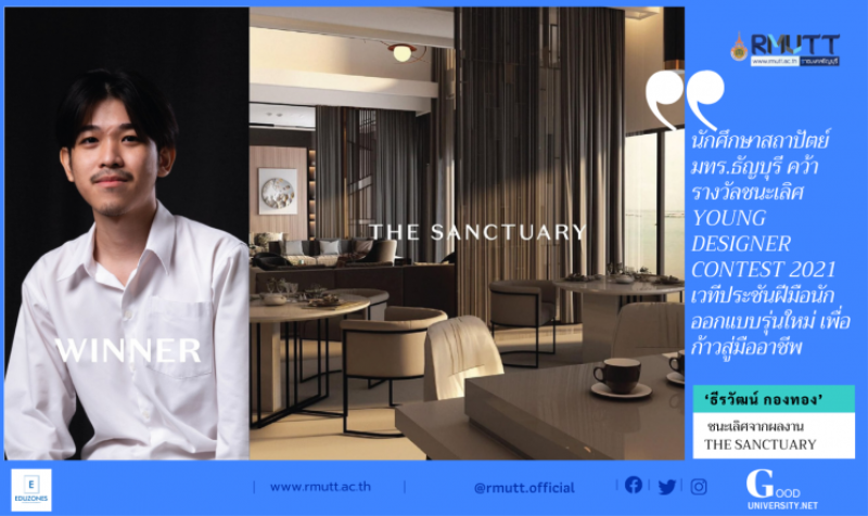tui sakrapee November 12, 2021 นักศึกษาสถาปัตย์ มทร.ธัญบุรี คว้ารางวัลชนะเลิศ YOUNG DESIGNER CONTEST 2021 เวทีประชันฝีมือนักออกแบบรุ่นใหม่ เพื่อก้าวสู่มืออาชีพ tui sakrapee November 12, 2021 นักศึกษาคณะสถาปัตย์ มทร.ธัญบุรี คว้ารางวัลชนะเลิศ YOUNG DESIGNER CONTEST 2021 เวทีประชันฝีมือของนักออกแบบรุ่นใหม่ เพื่อก้าวสู่มืออาชีพ พร้อมได้รับงบตกแต่งห้องเรียนในมหาวิทยาลัยเทคโนโลยีราชมงคลธัญญบุรีมูลค่า 50,000 บาท ประกาศผล YOUNG DESIGNER CONTEST 2021 เวทีประชันฝีมือของนักออกแบบรุ่นใหม่ เพื่อก้าวสู่มืออาชีพ • รางวัลชนะเลิศ ได้แก่ ‘ธีรวัฒน์ กองทอง’ นักศึกษาคณะสถาปัตยกรรมศาสตร์ สาขาวิชาสถาปัตยกรรมภายใน มทร.ธัญบุรี จากผลงาน THE SANCTUARY ได้รับทุนการศึกษา จำนวน… Continue Reading